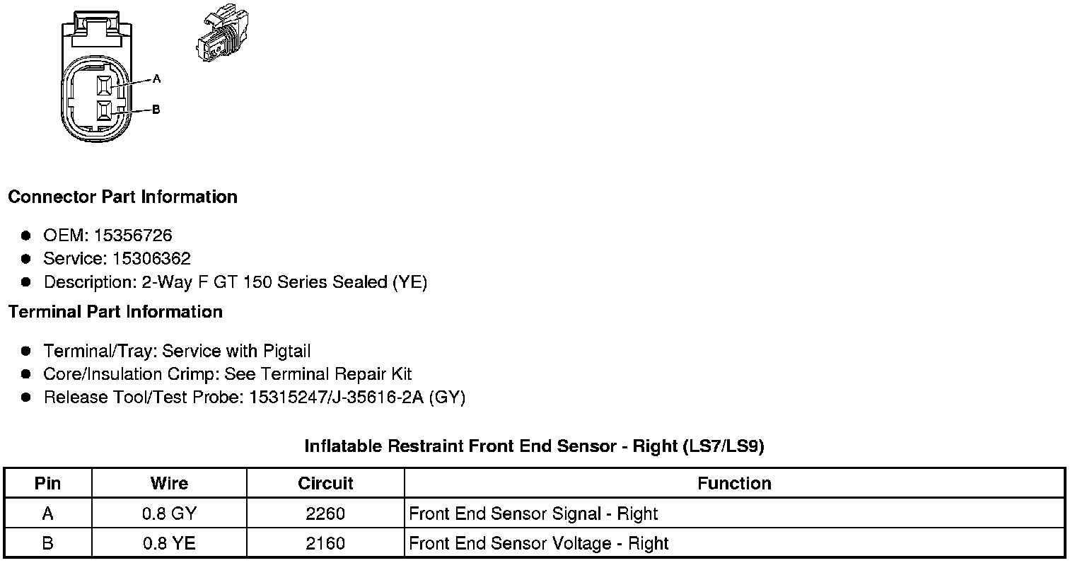 Inflatable Restraint Front End Sensor - Right (LS7/LS9)