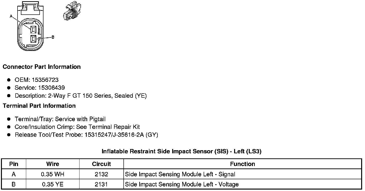 Inflatable Restraint Side Impact Sensor (SIS) - Right (LS3)