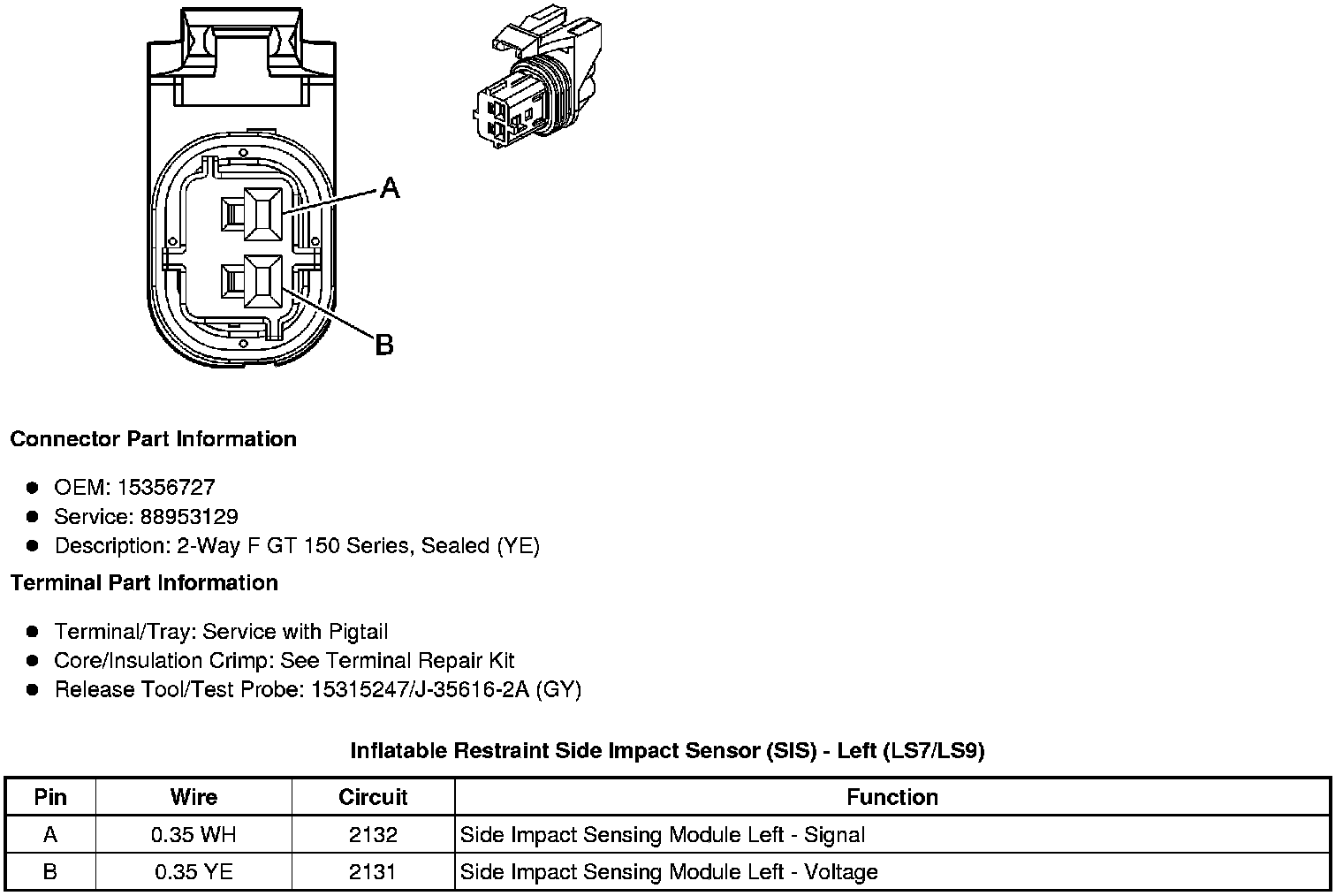 Inflatable Restraint Side Impact Sensor (SIS) - Left (LS7/LS9)