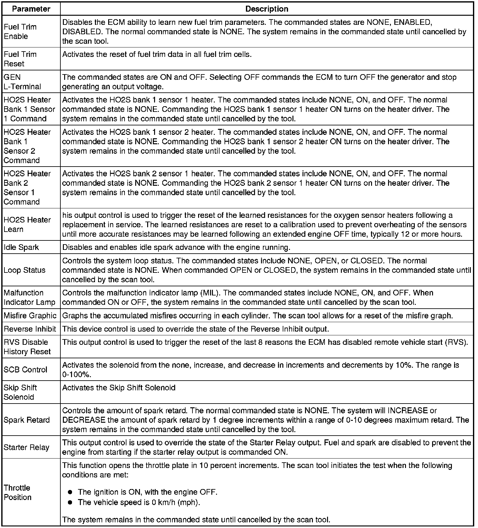 Only the parameters listed below are referenced in this service manual for use in diagnosis.