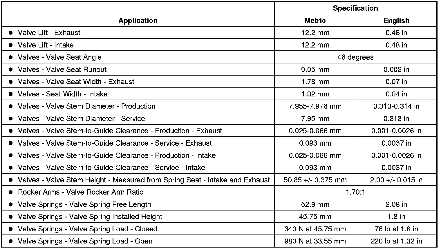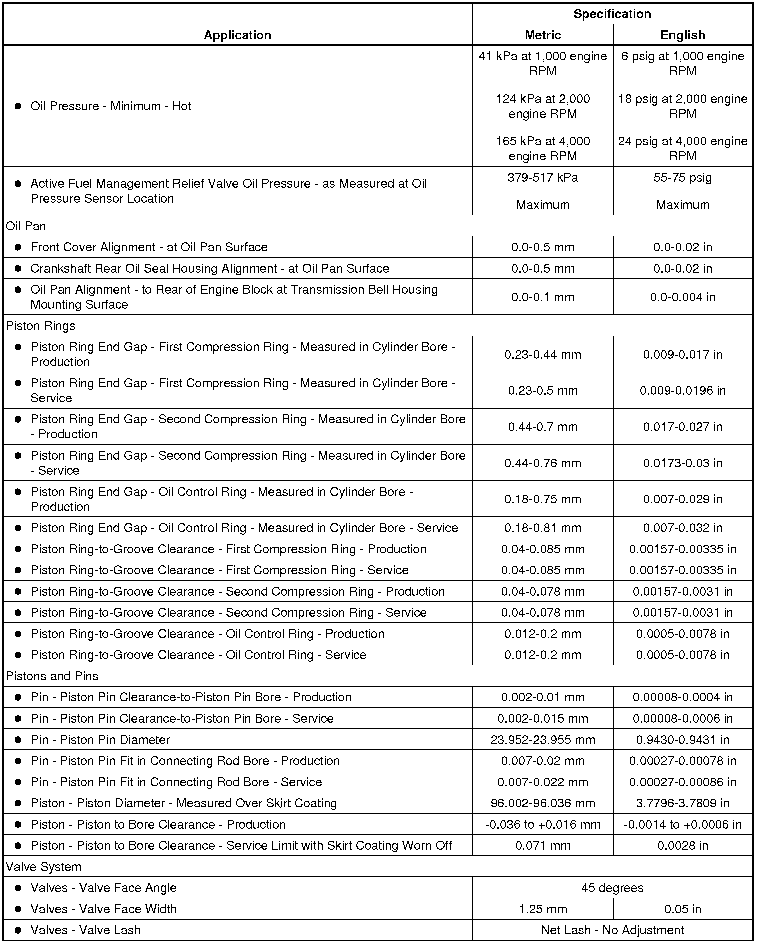 Engine Mechanical Specifications