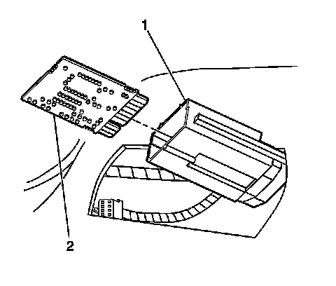 4. Remove the HVAC control processor (2) from the HVAC processor case (1).