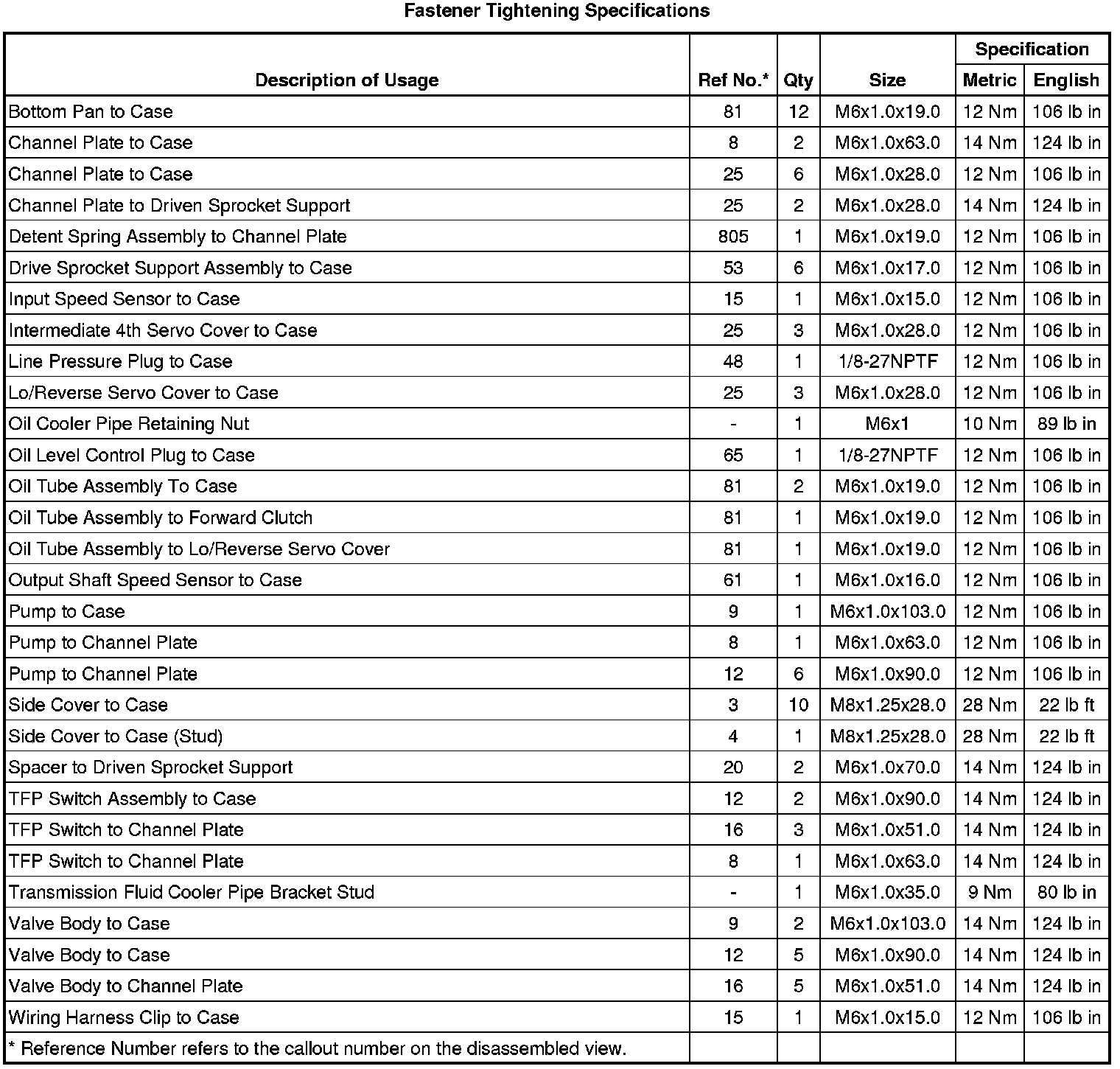 Fastener Tightening Specifications