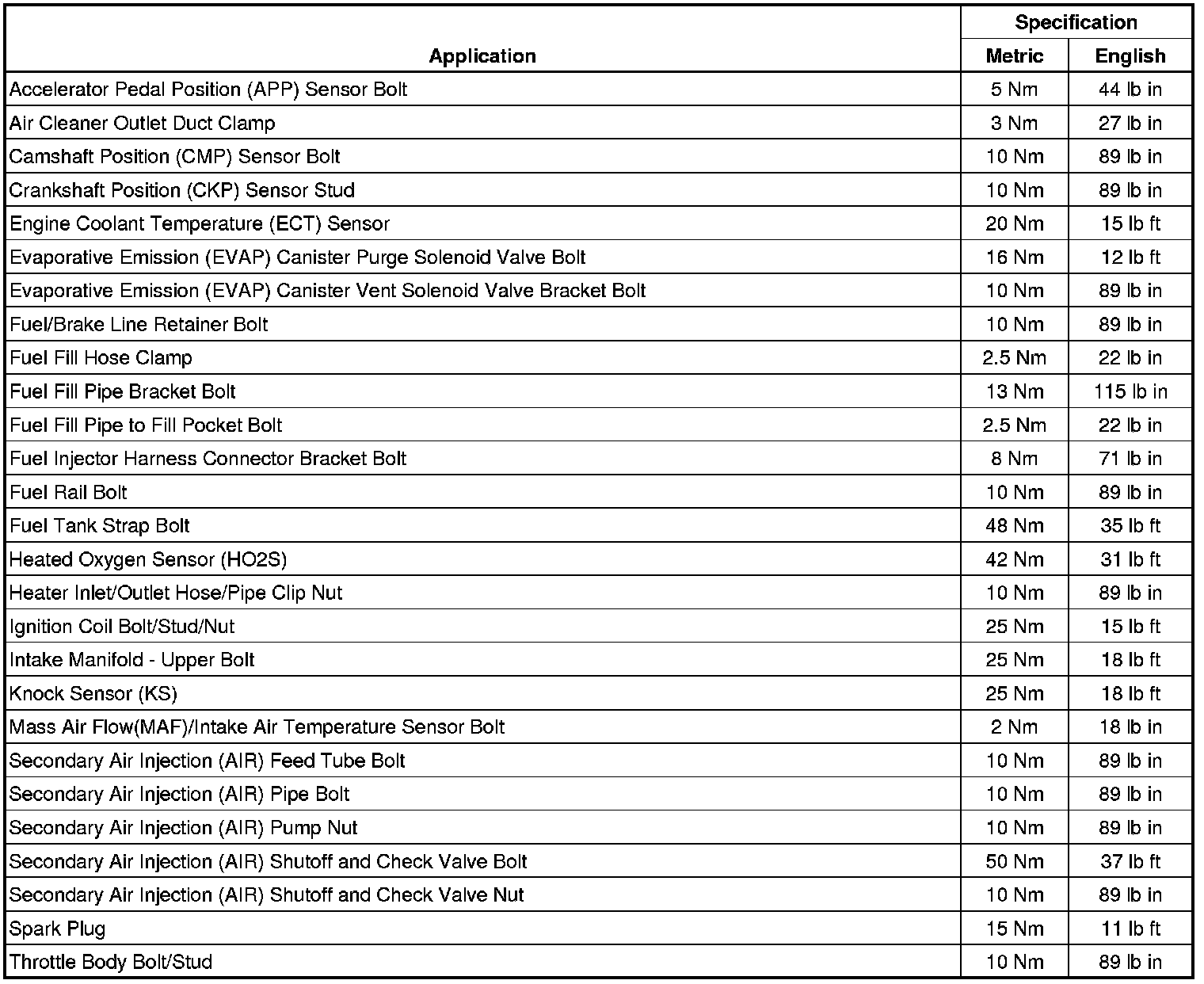 Fastener Tightening Specifications