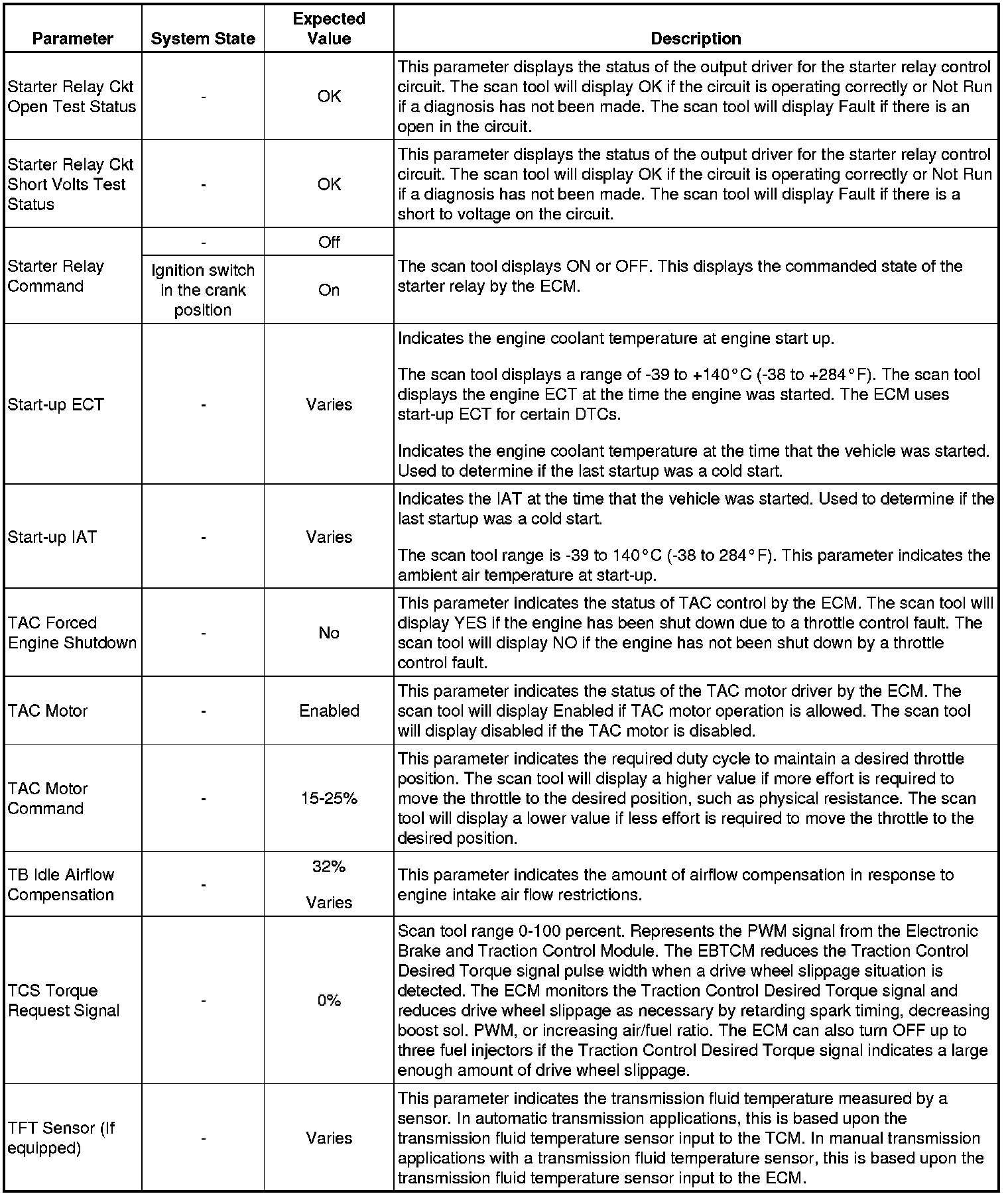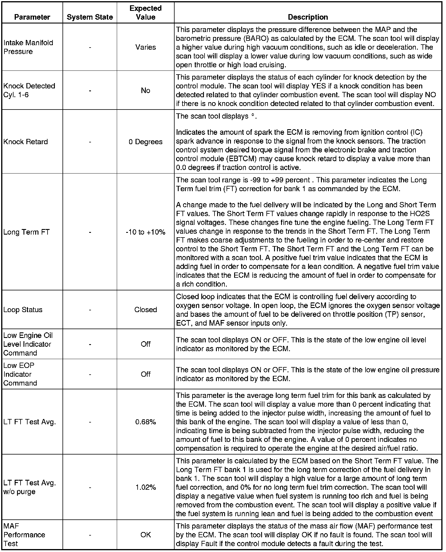 The Engine Control Module Scan Tool Data List contains all engine-related parameters that are available on the scan tool. The list is arranged in alphabetical order. A given parameter may appear in any one of the data lists, and in some cases may appear more than once, or in more than one data list in order to group certain related parameters together.