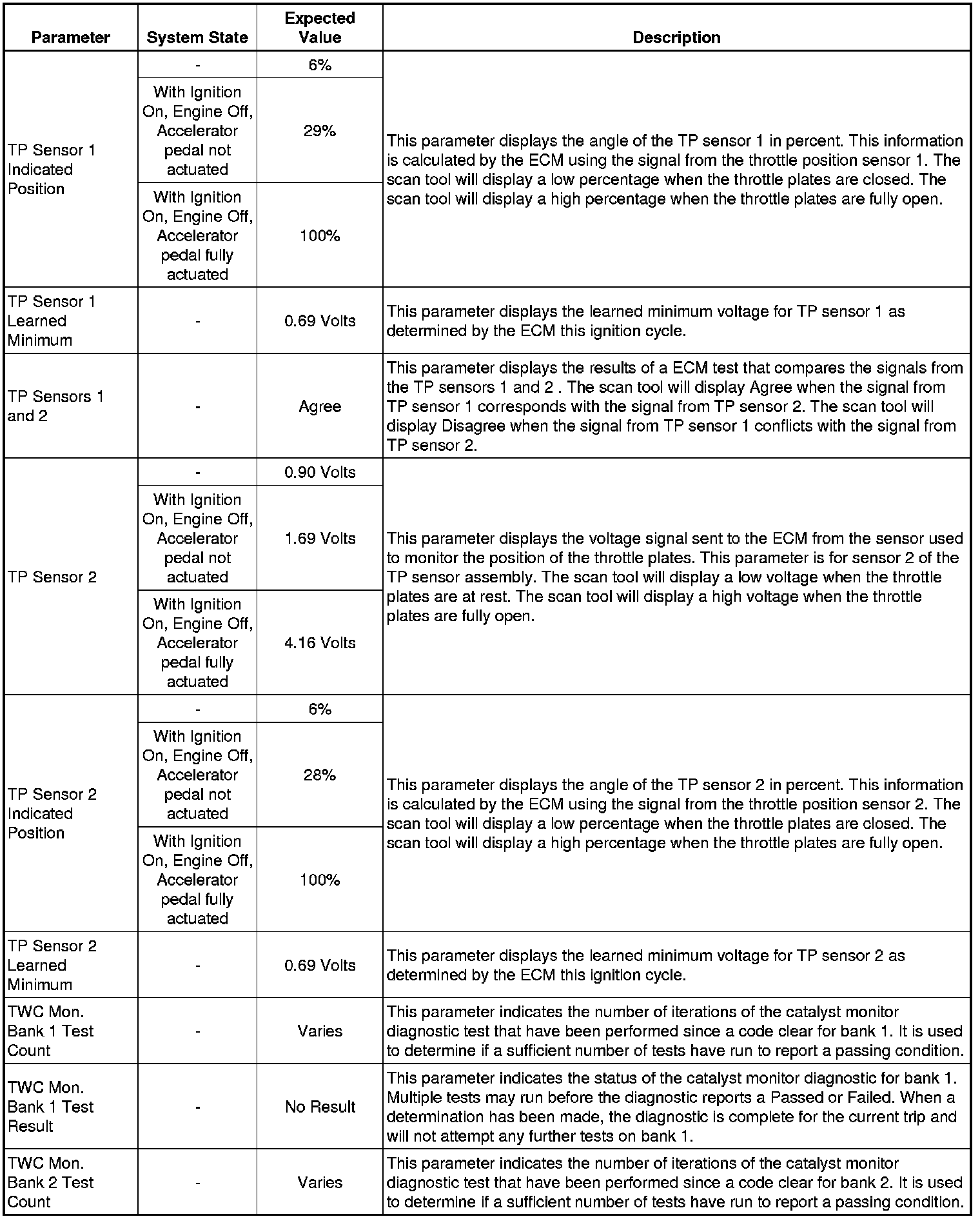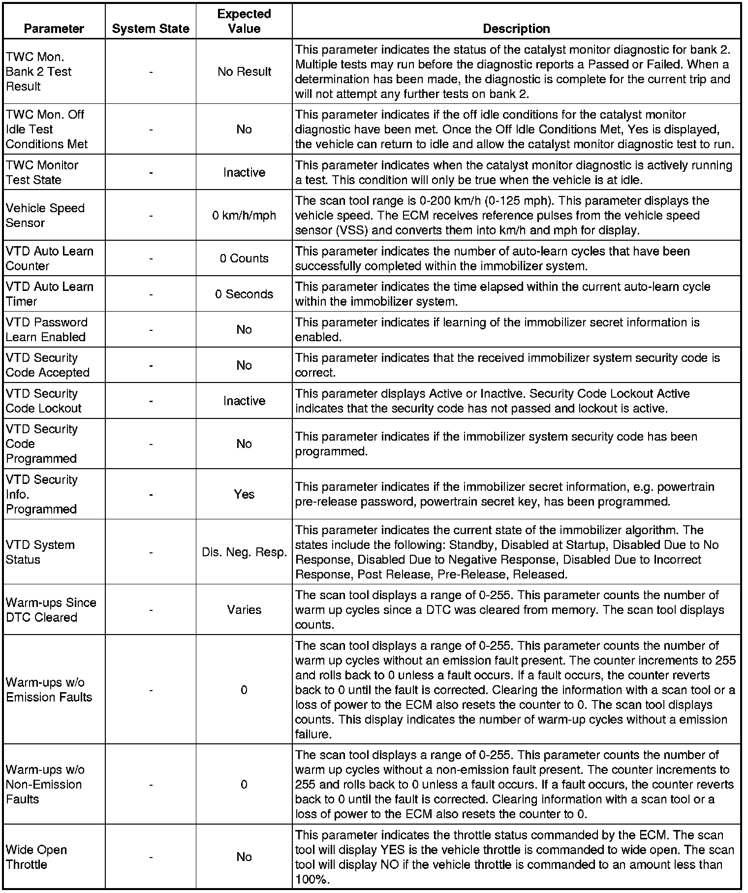 Only the parameters listed below are referenced in this service manual for use in diagnosis. If all values are within the typical range described below, refer to Symptoms - Computers and Control Systems (Symptoms - Engine Controls) for diagnosis.