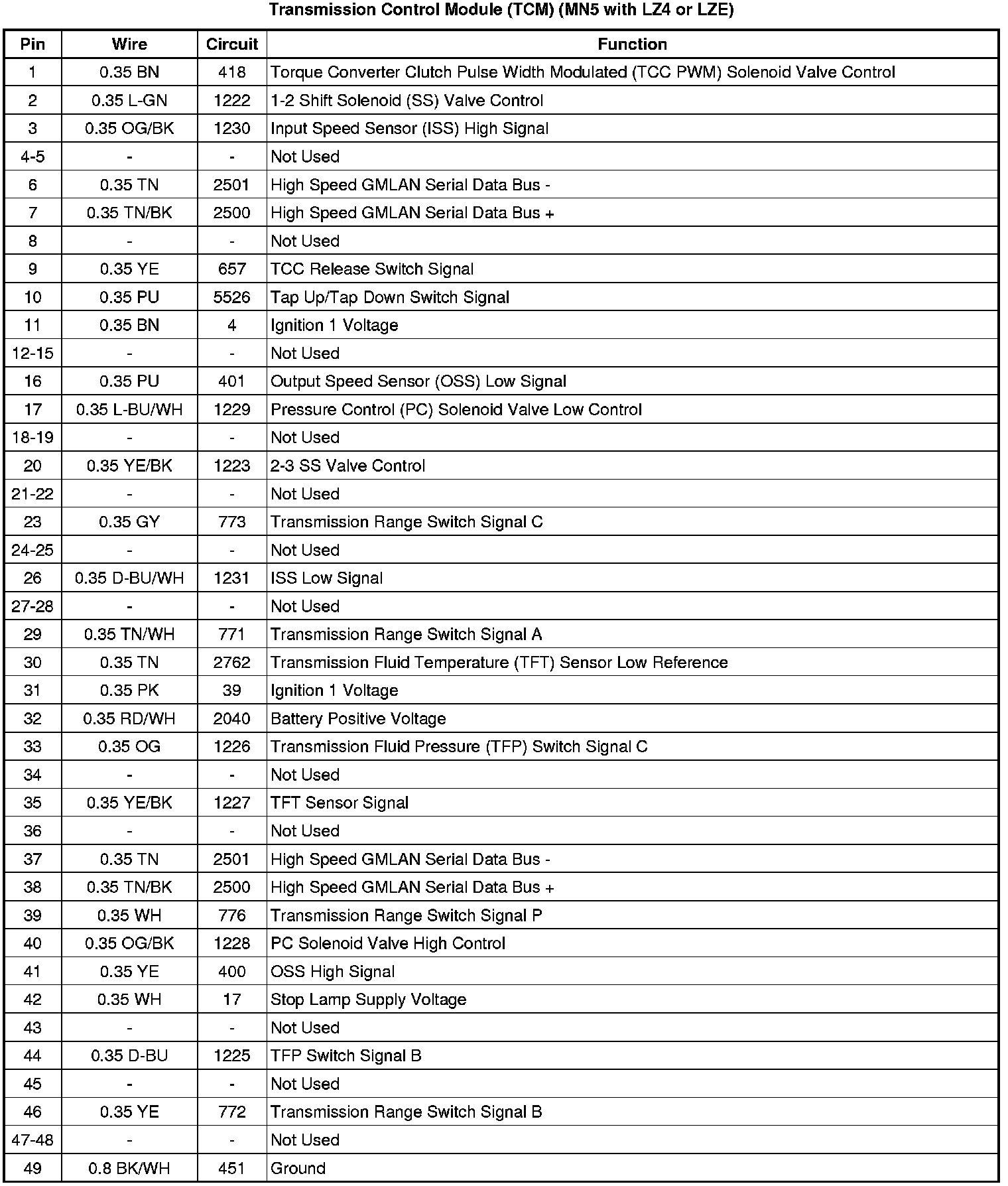 Transmission Control Module (TCM) (MN5 with LZ4 or LZE)