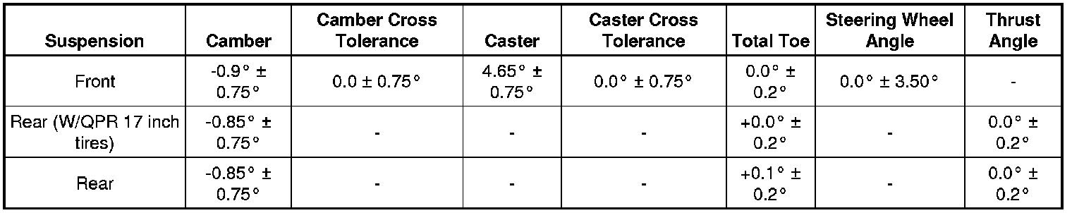 Wheel Alignment Specifications