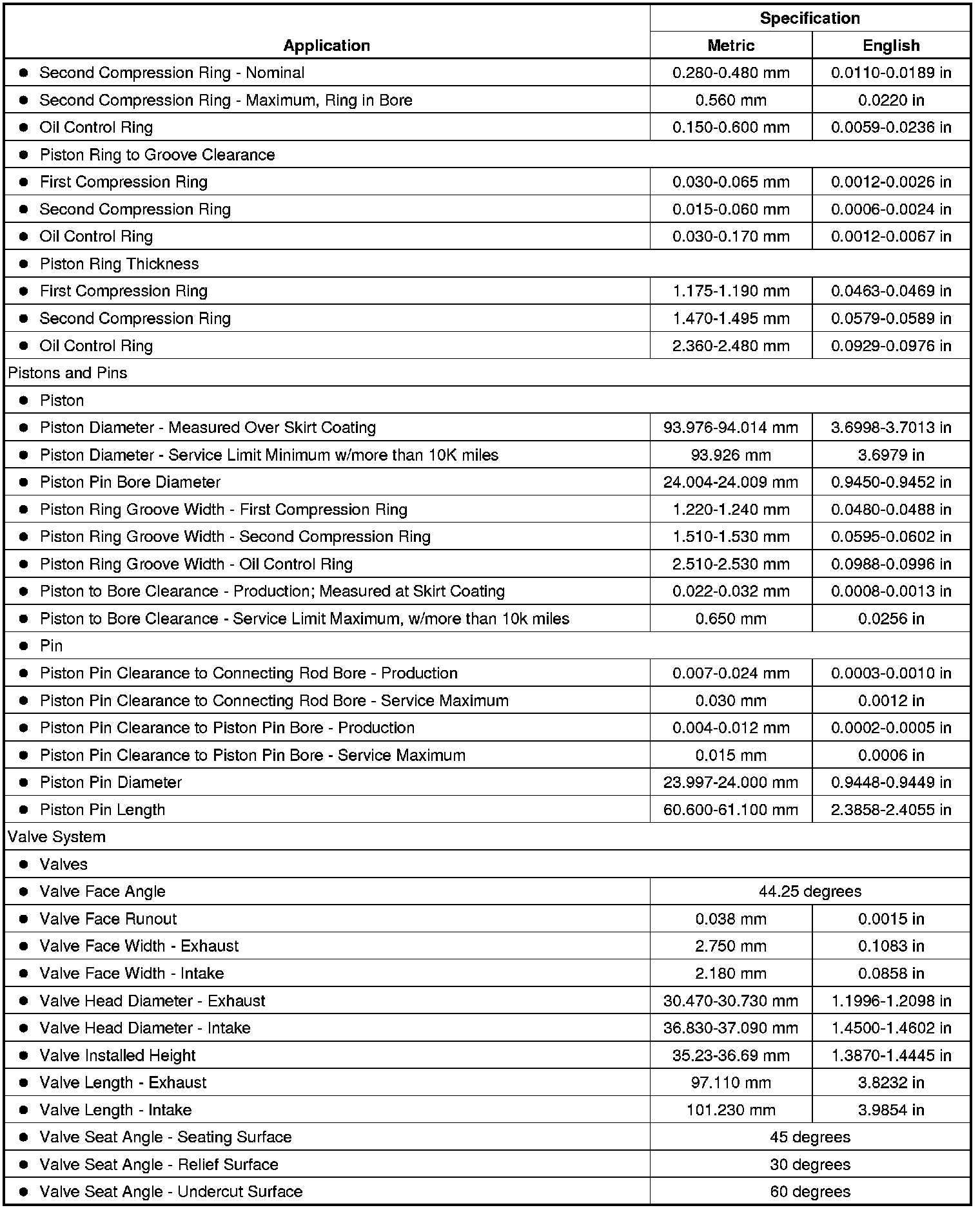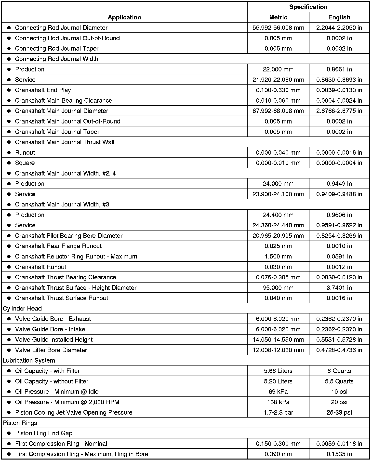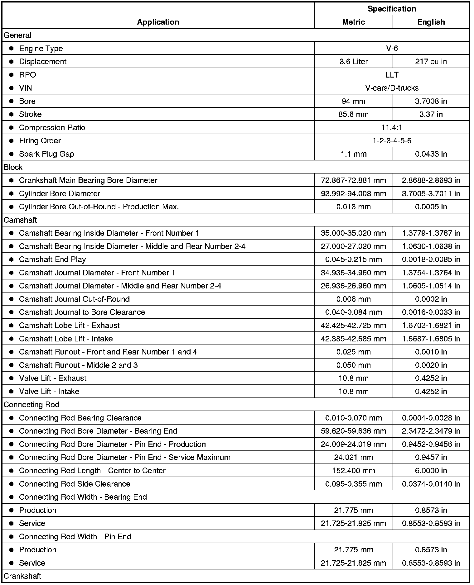Engine Mechanical Specifications (LLT) (3.6L)