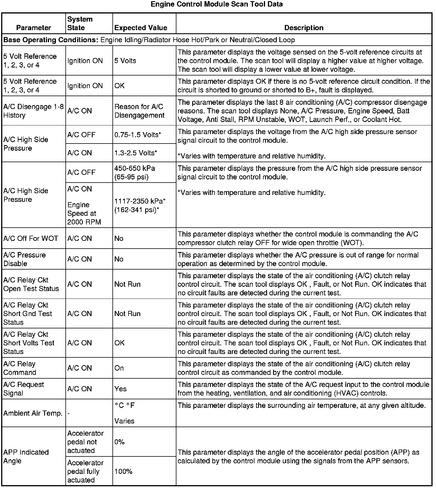 The Engine Control Module Scan Tool Data List contains all engine-related parameters that are available on the scan tool. This is a master list arranged in alphabetical order and not all the parameters listed are in every engine platform.