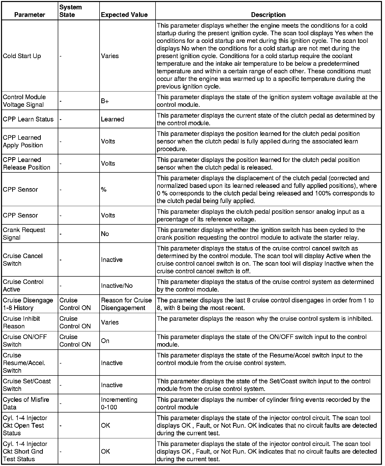 Only the parameters listed below are referenced in this service manual for use in diagnosis.