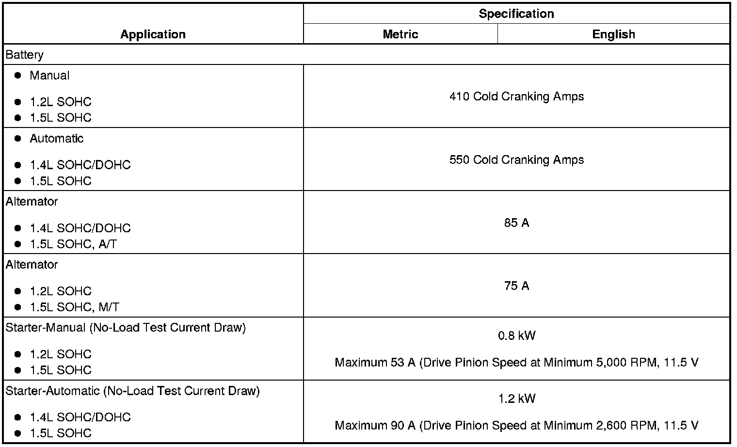 Electrical Specifications
