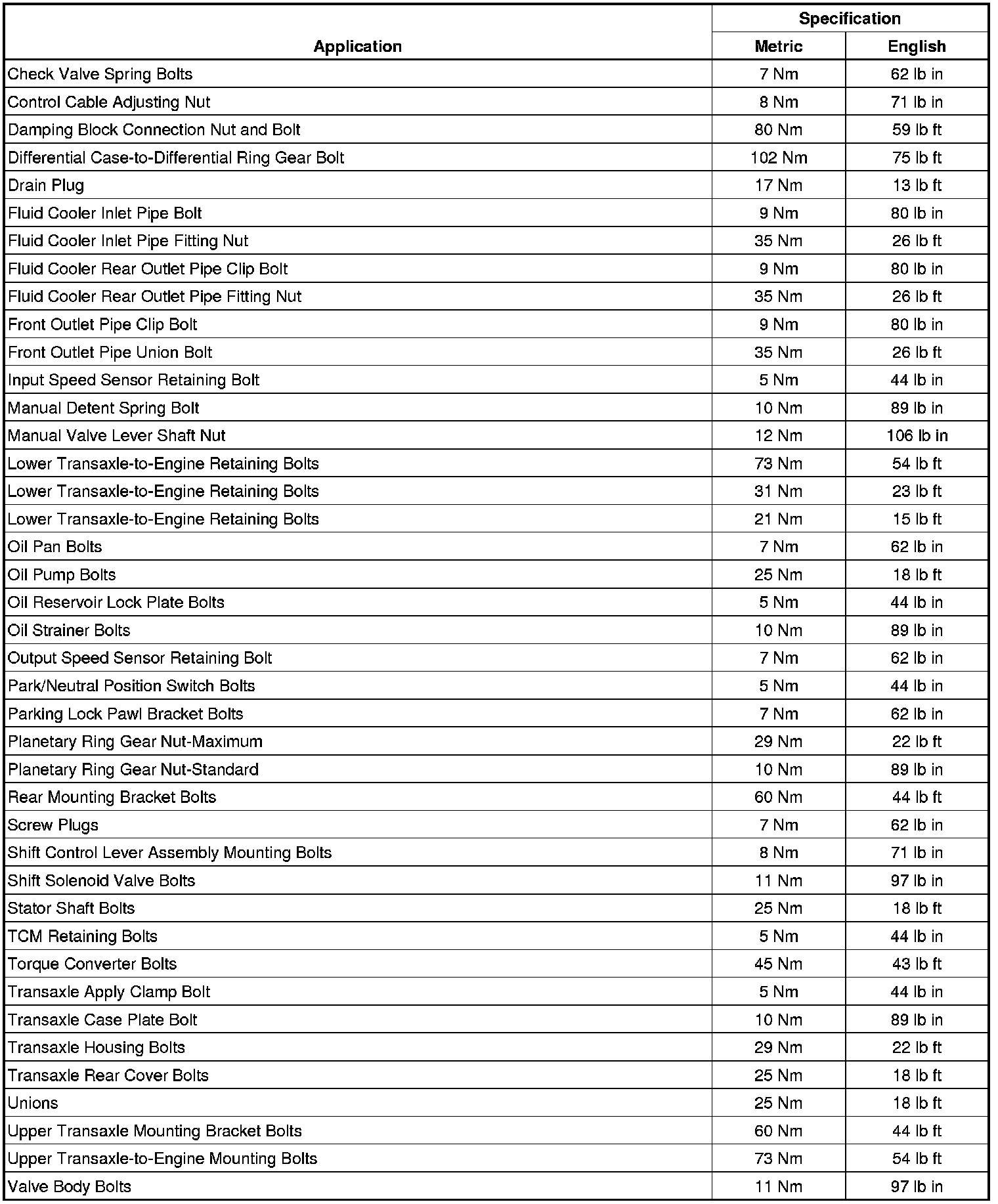 Fastener Tightening Specifications