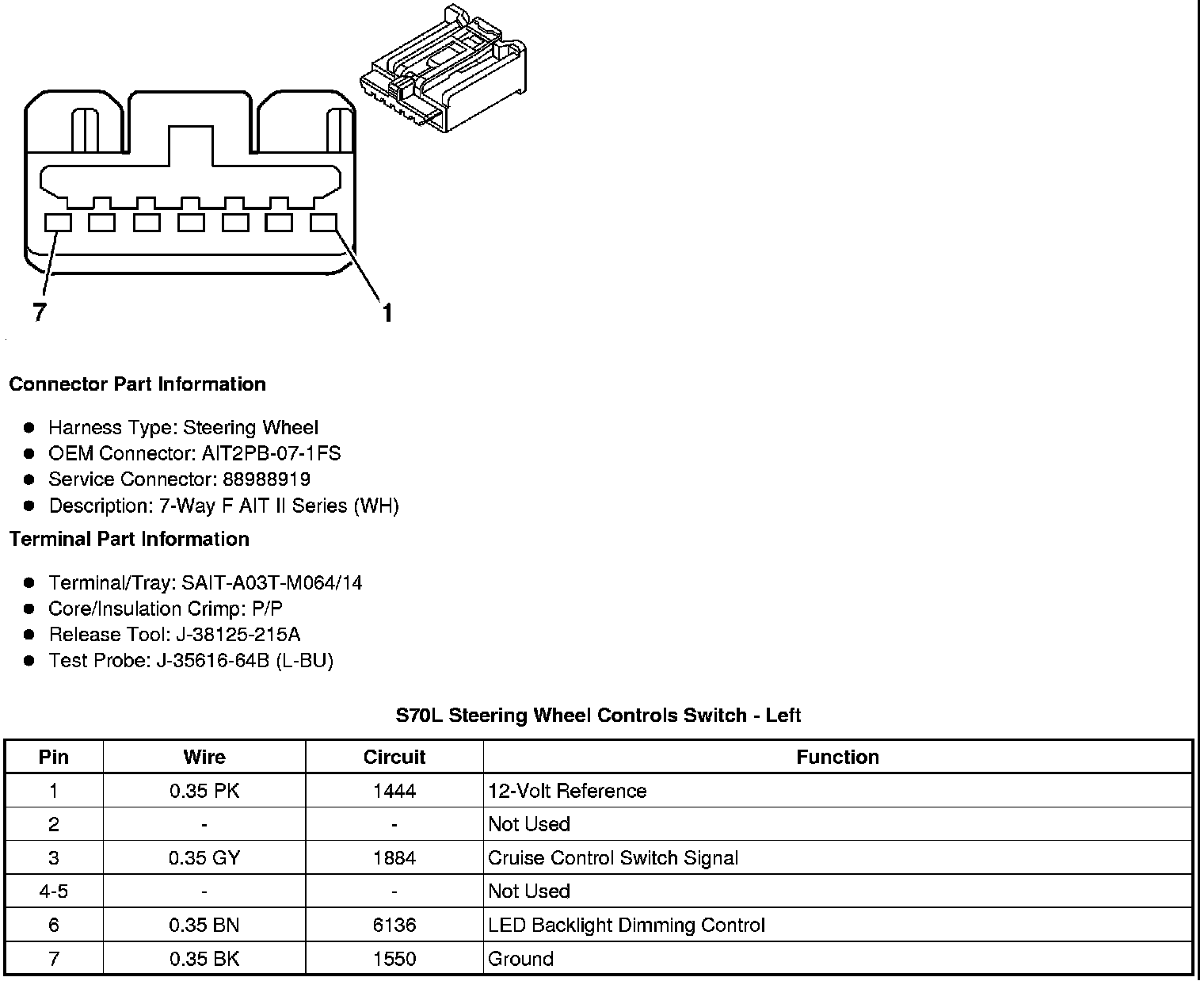 S70L Steering Wheel Controls Switch - Left