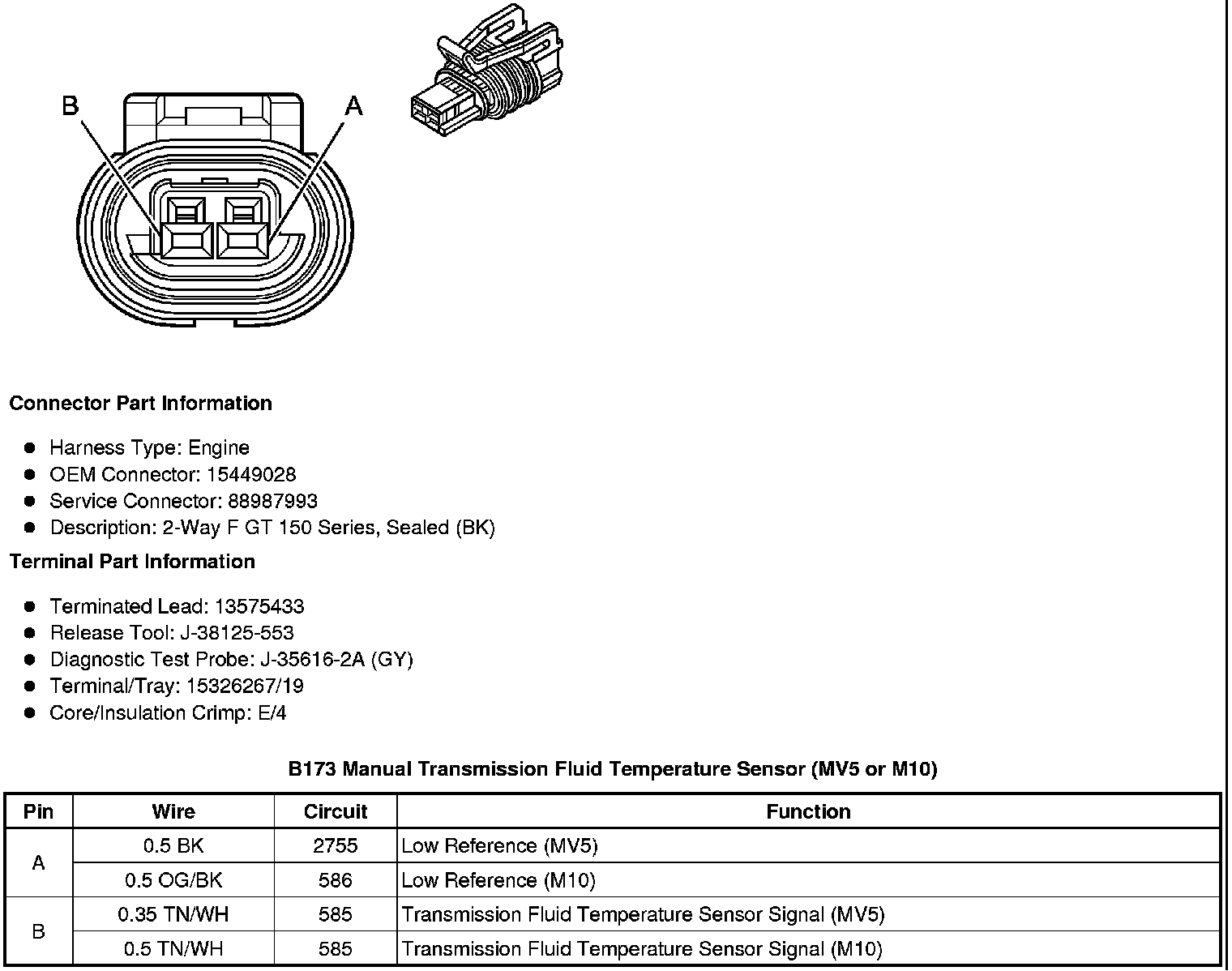 B173 Manual Transmission Fluid Temperature Sensor (MV5 or M10)