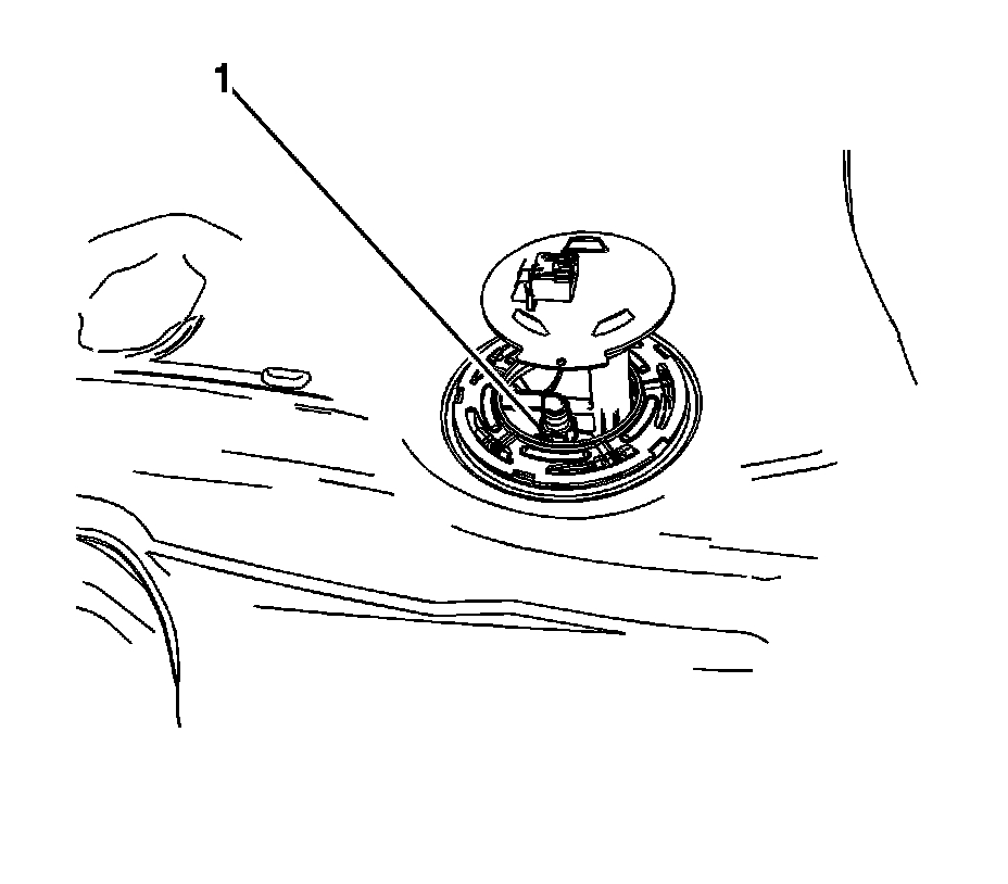 2. Partially install the secondary fuel pump module in order to connect the fuel transfer hose quick connect fitting (1). Refer to Plastic Collar Quick Connect Fitting Service (Plastic Collar Quick Connect Fitting Service).