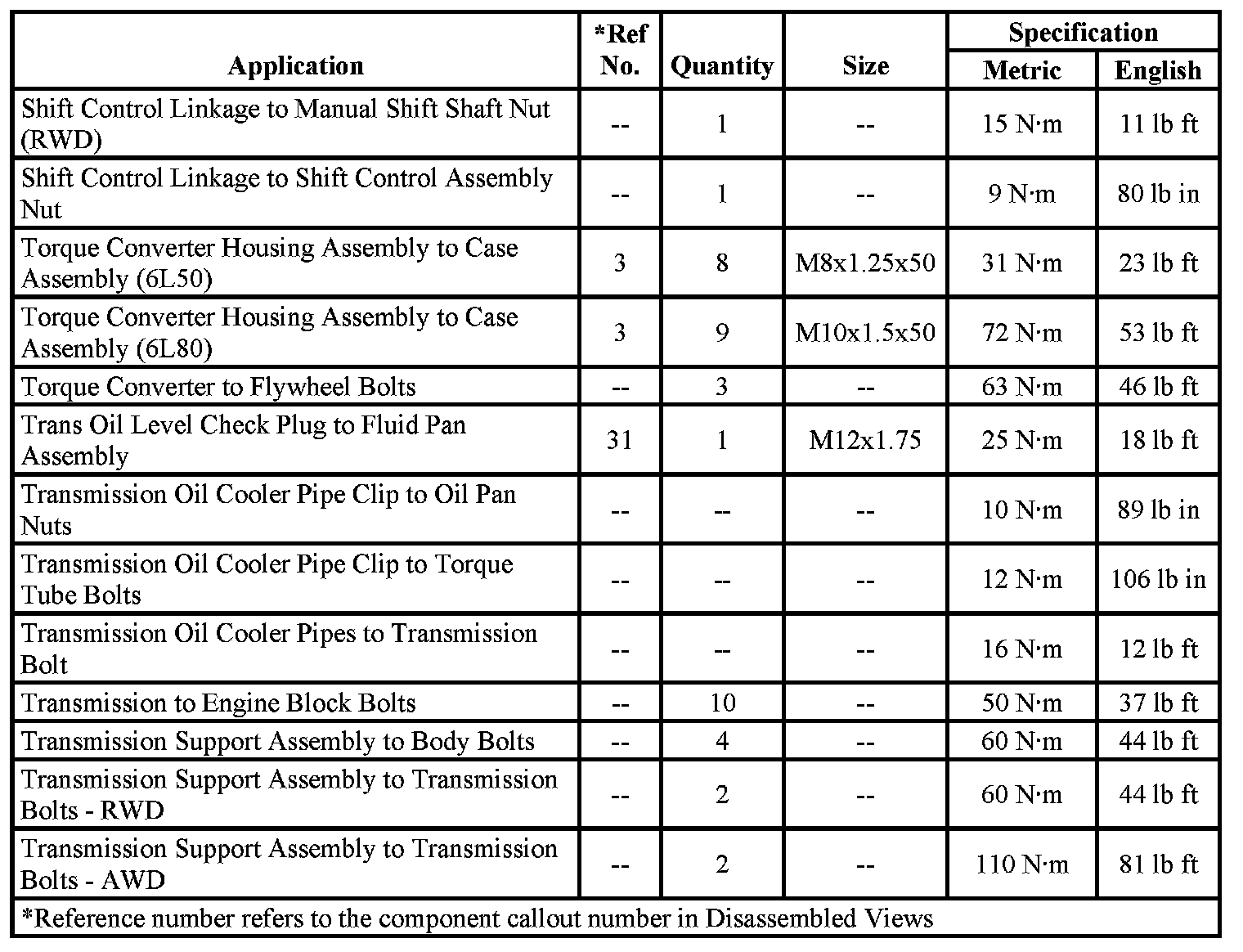 Fastener Tightening Specifications