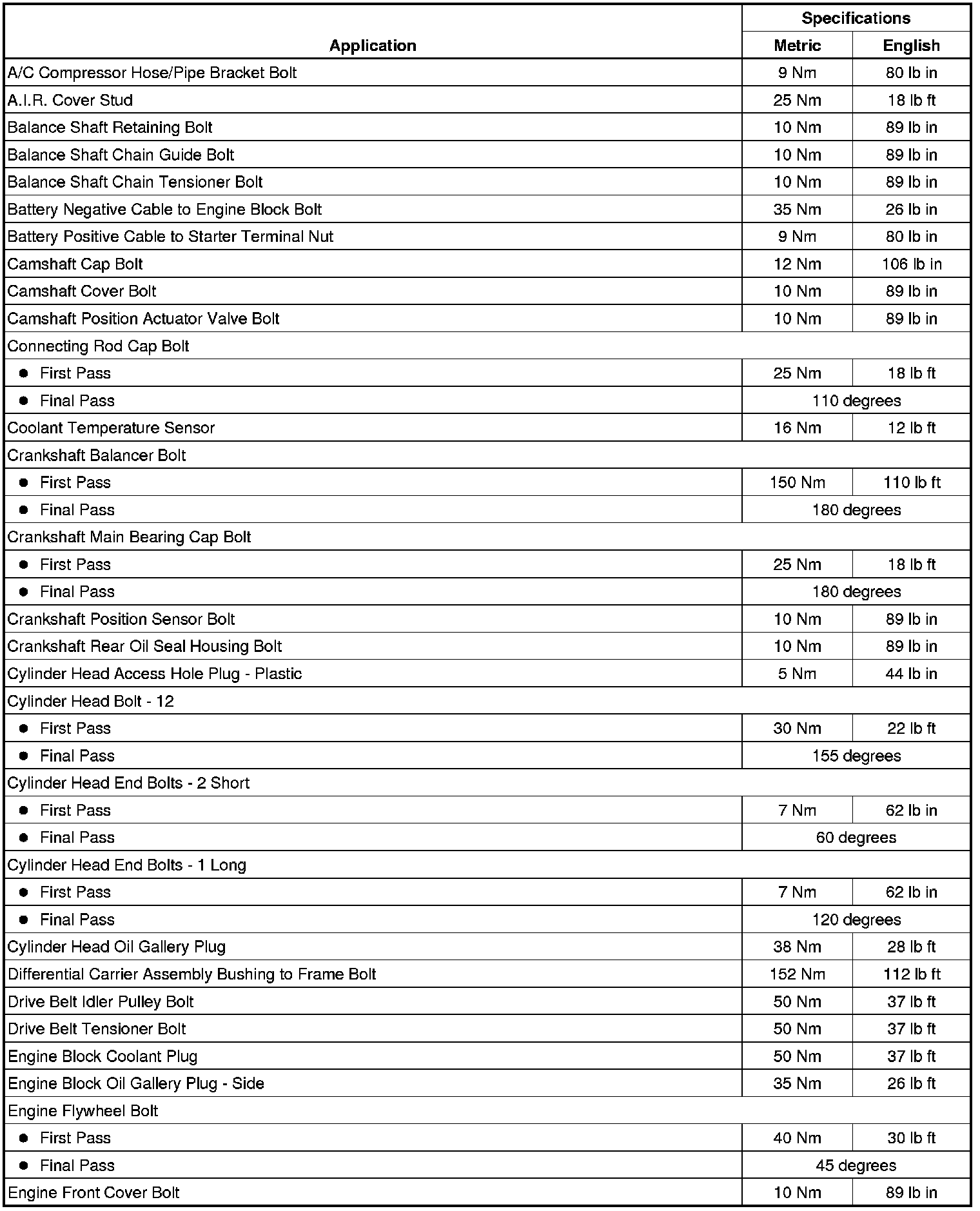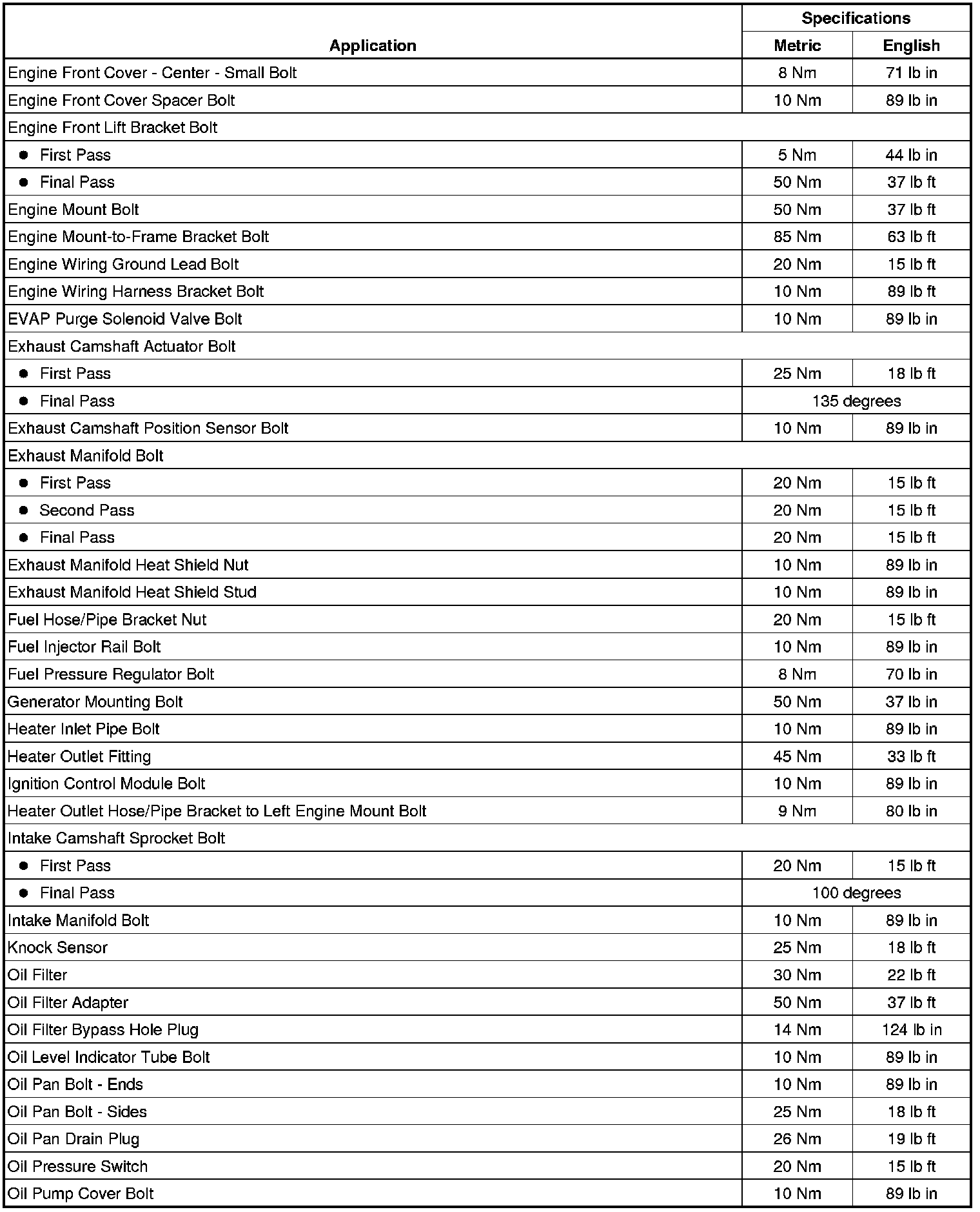 Fastener Tightening Specifications