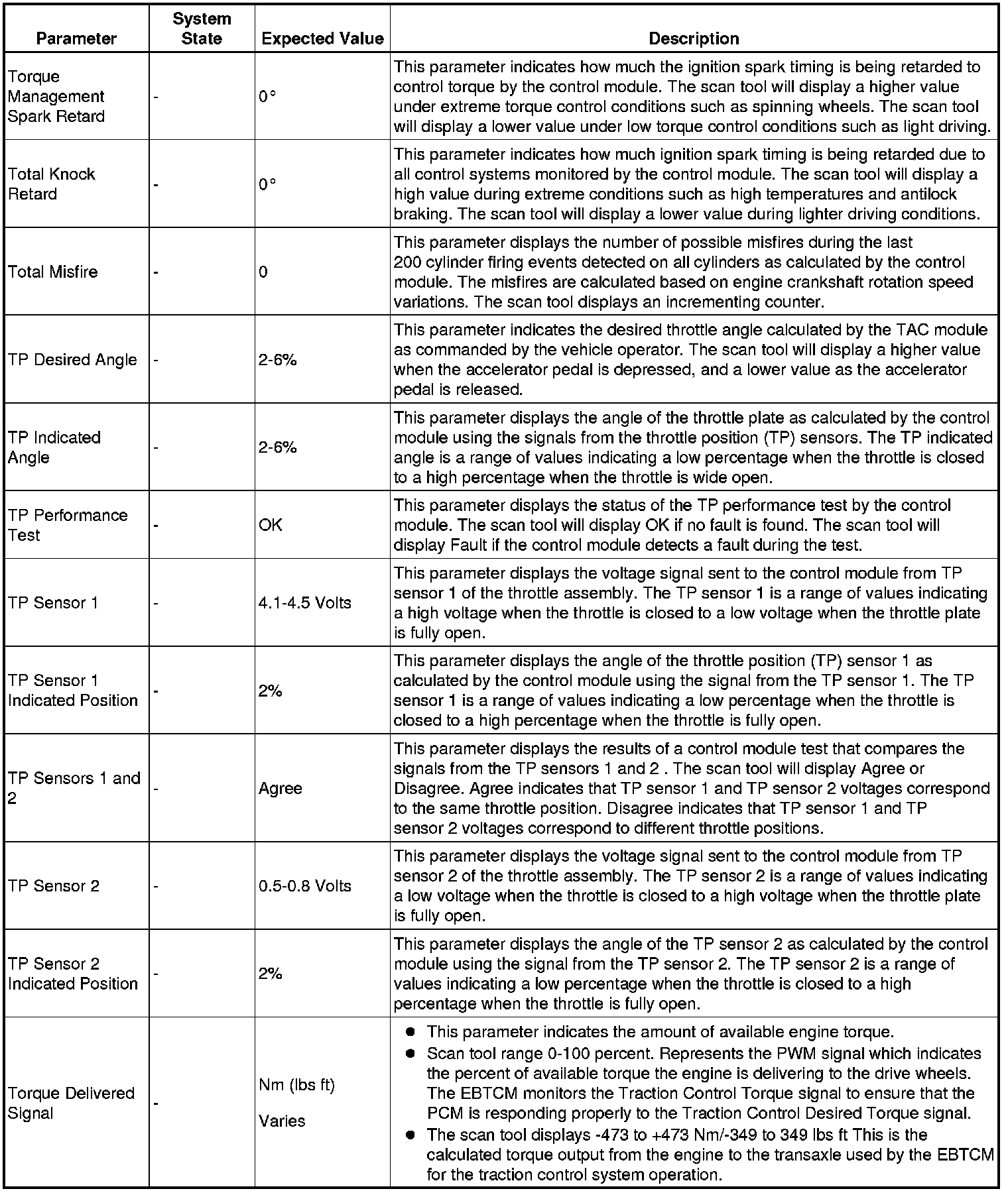 The scan tool values from a properly running engine may be used for comparison with the engine you are diagnosing. The engine scan tool data list represents values that would be seen on a normally running engine.