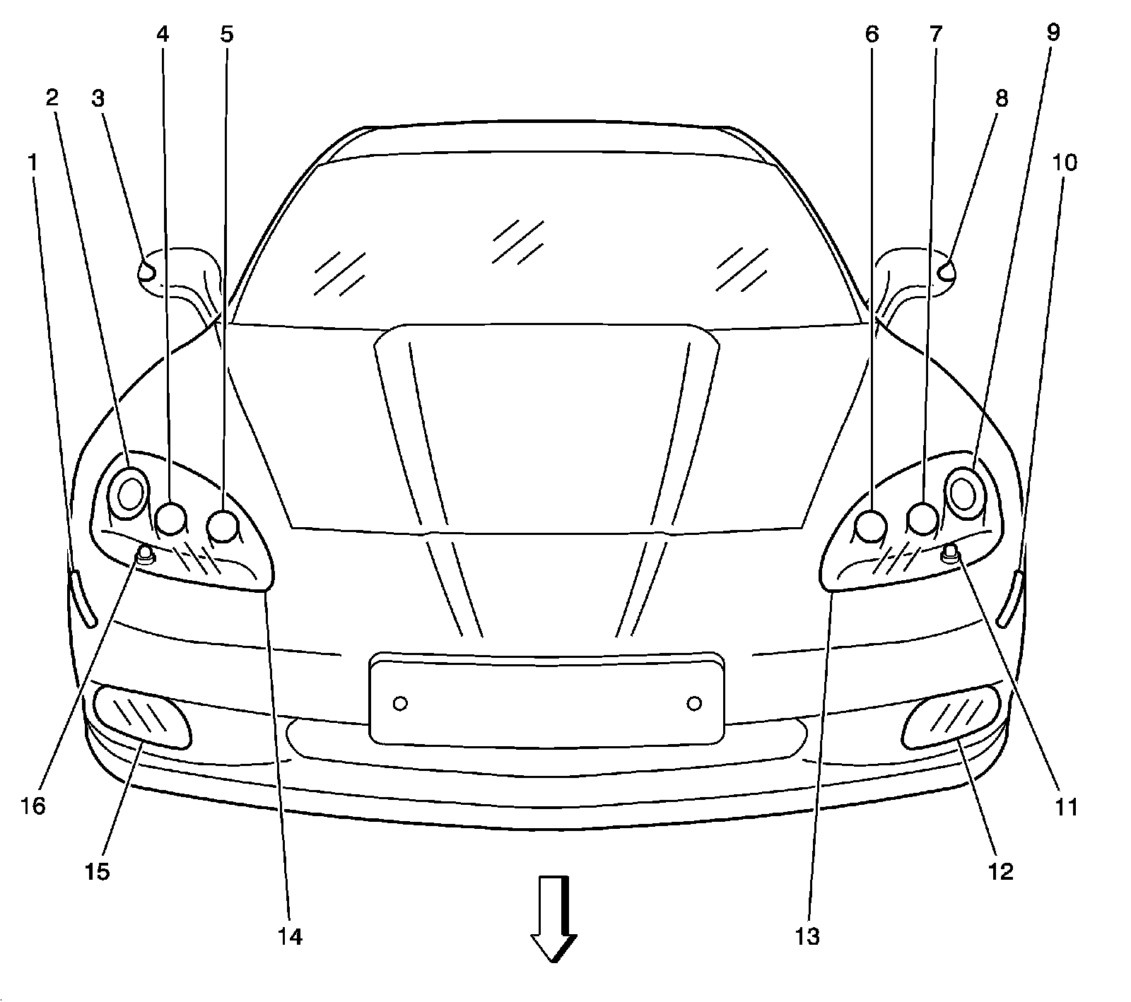Home >> Chevrolet >> 2011 >> Corvette V8-6.2L SC >> Repair and Diagnosis >> Locations >> Component Locations >> Front of Vehicle/Engine Compartment Component Views >> Front of Vehicle Components