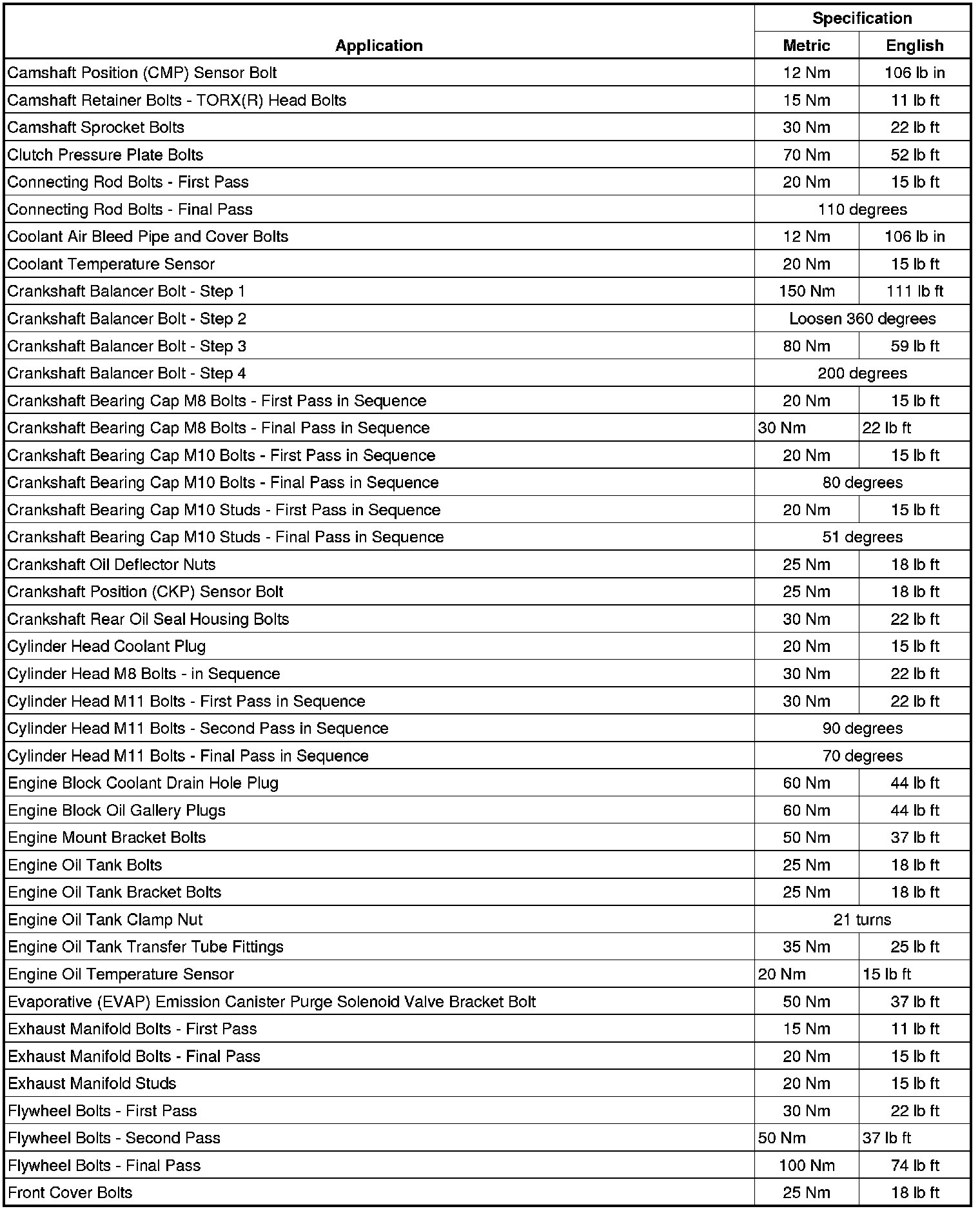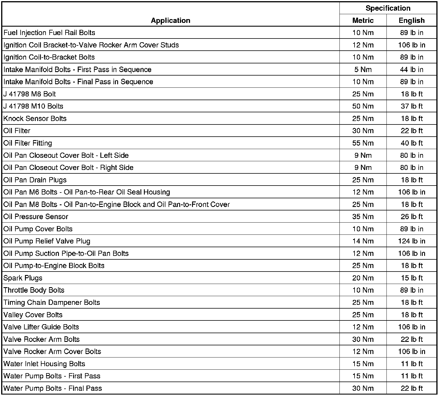 Fastener Tightening Specifications (7.0L LS7)