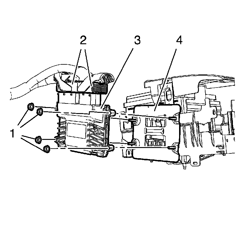 1. Install the engine control module (3) to the engine control module bracket (4).