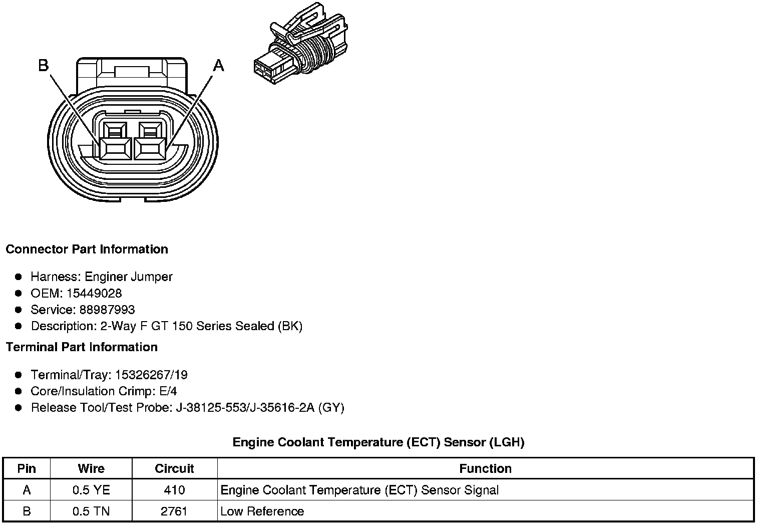 Engine Coolant Temperature (ECT) Sensor (LC8, LMF, LU3, L20, or L96)