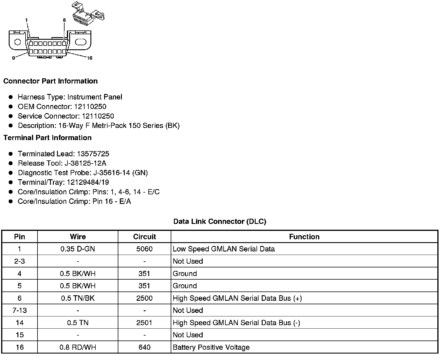 Data Link Connector: Diagrams
