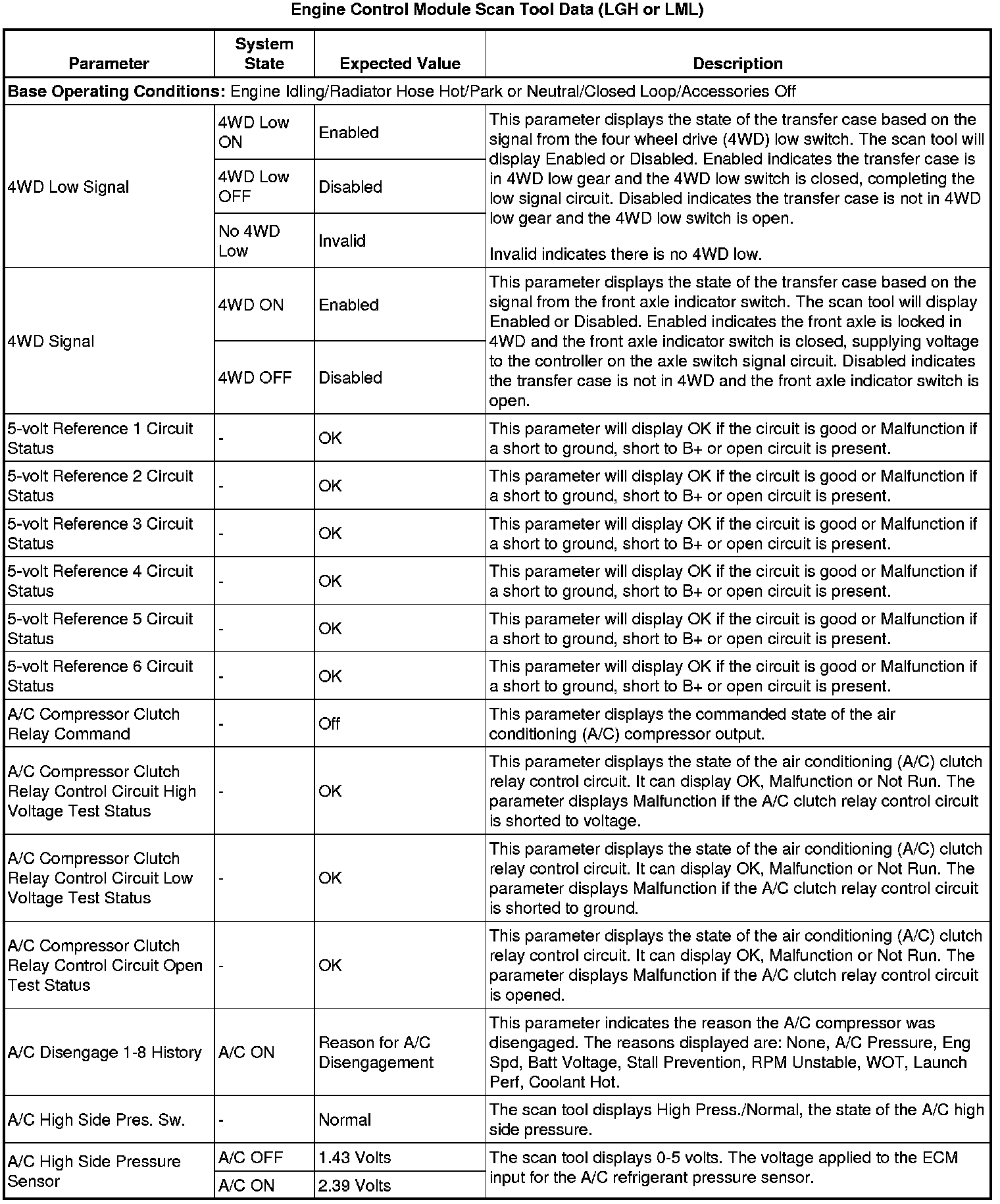 The scan tool values from a properly running engine may be used for comparison with the engine you are diagnosing. The Engine Scan Tool Data List represents values that would be seen on a normally running engine.