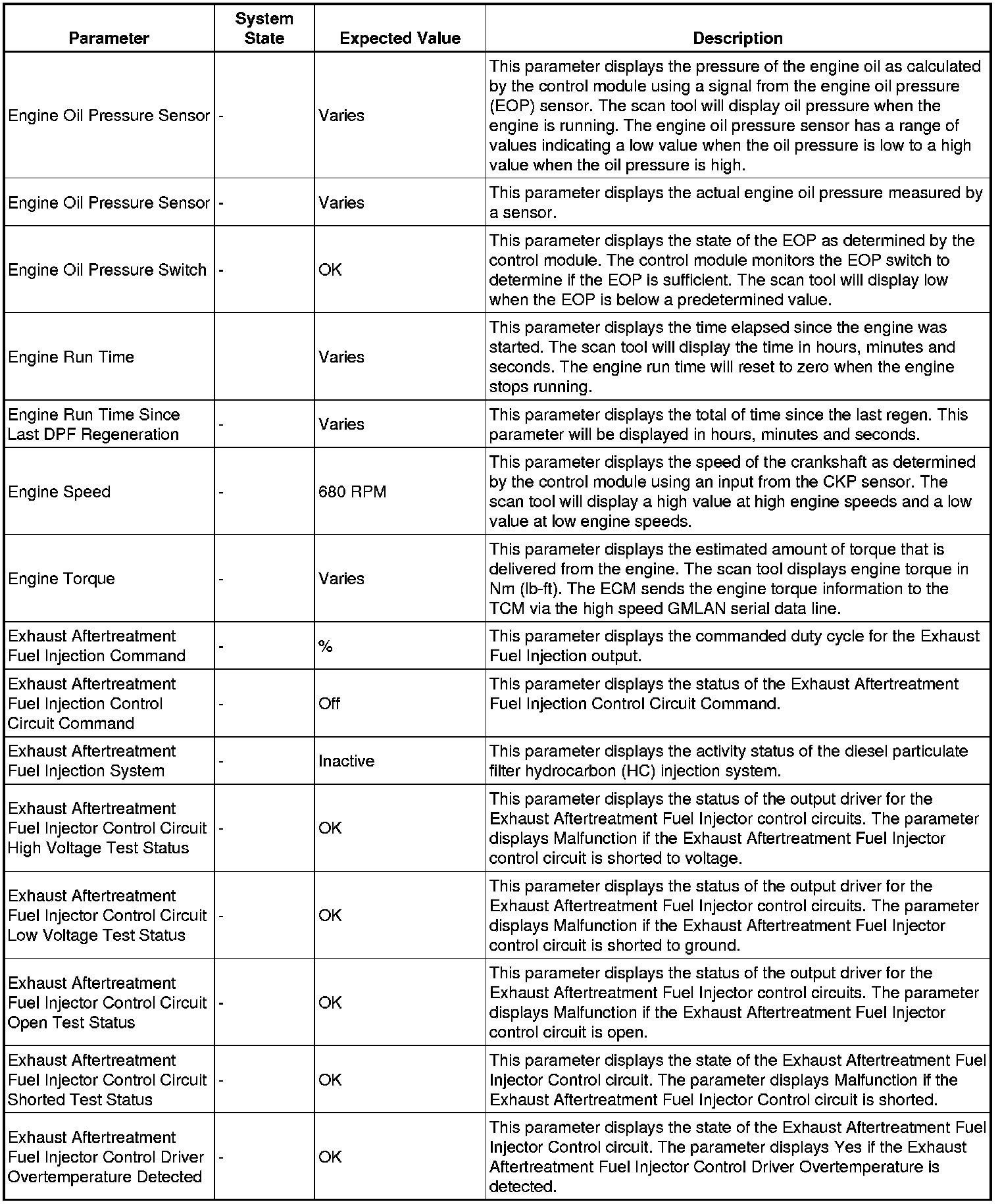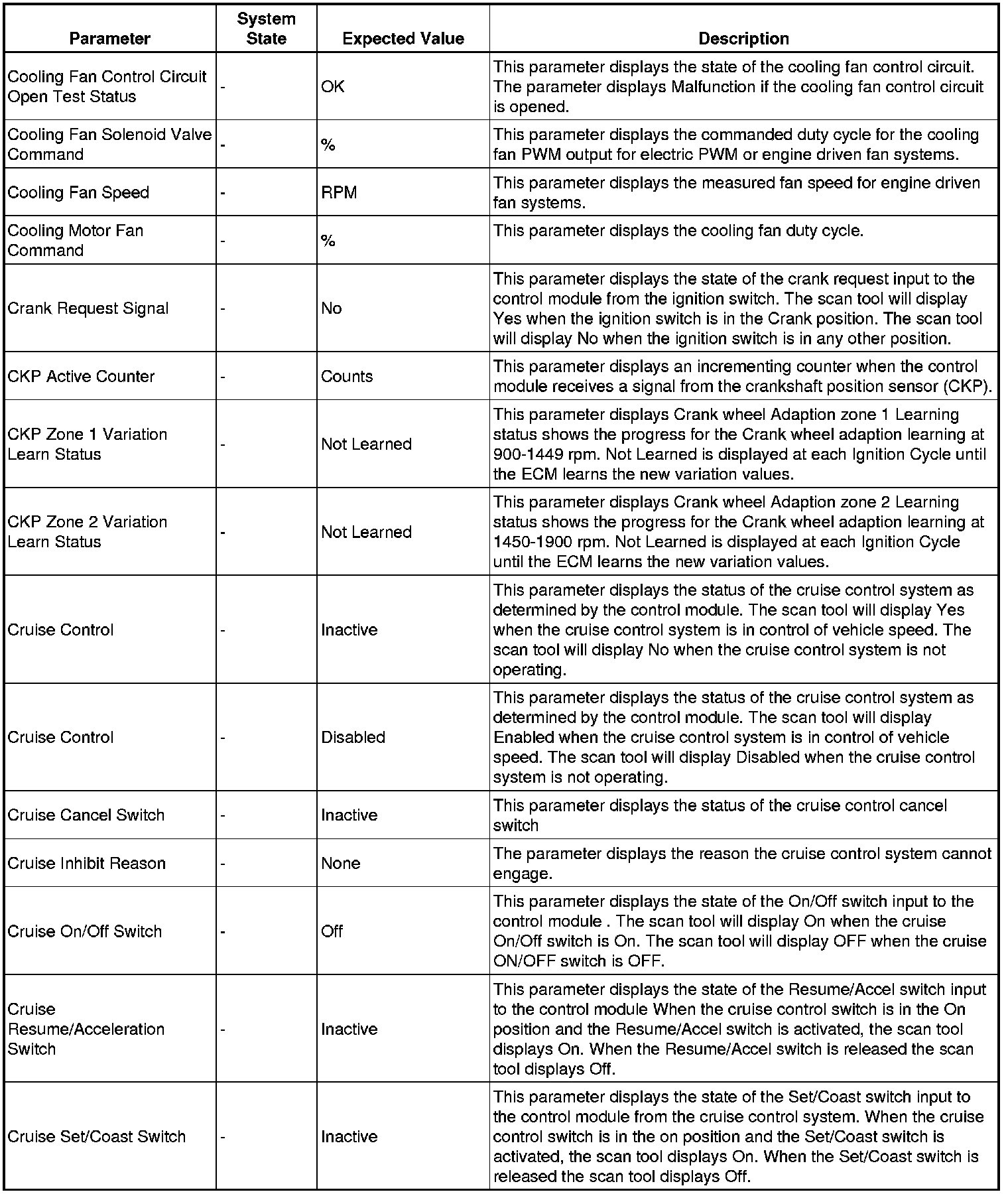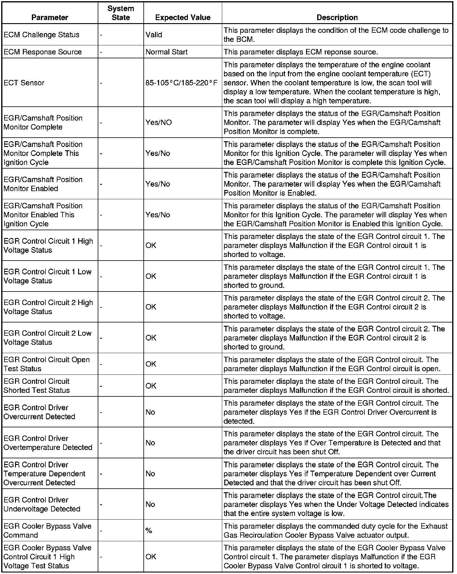 The Engine Control Module Scan Tool Data List contains all engine-related parameters that are available on the scan tool. The list is arranged in alphabetical order. A given parameter may appear in any one of the data lists, and in some cases may appear more than once, or in more than one data list in order to group certain related parameters together.