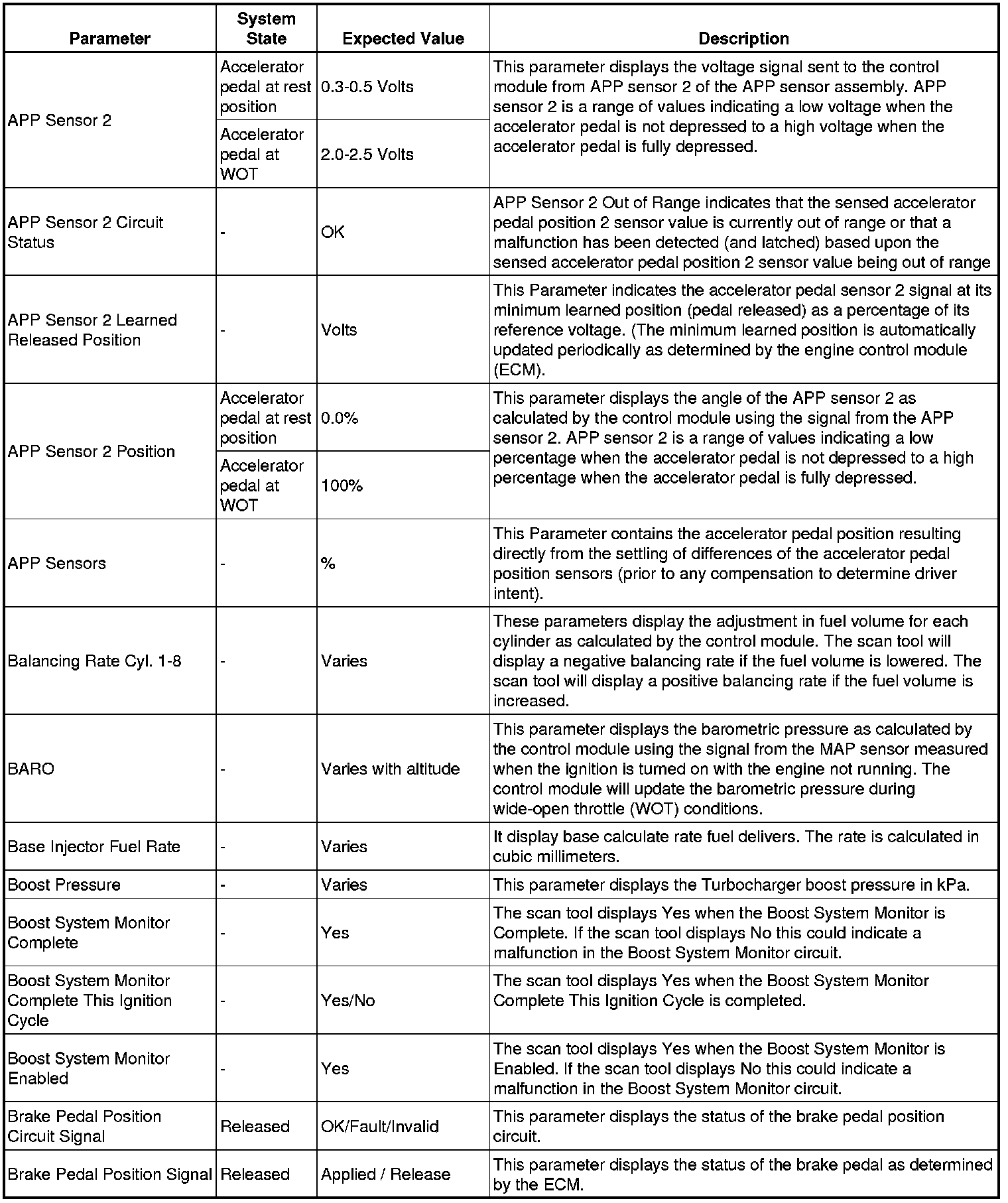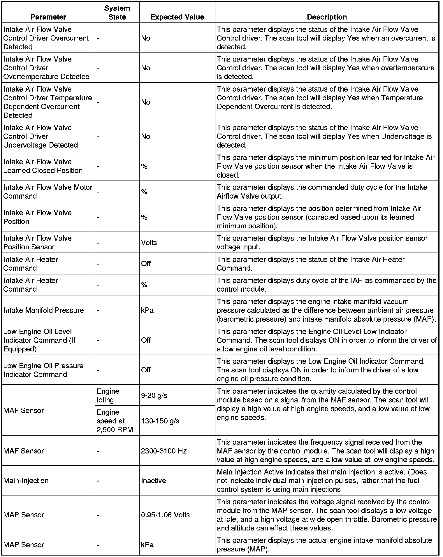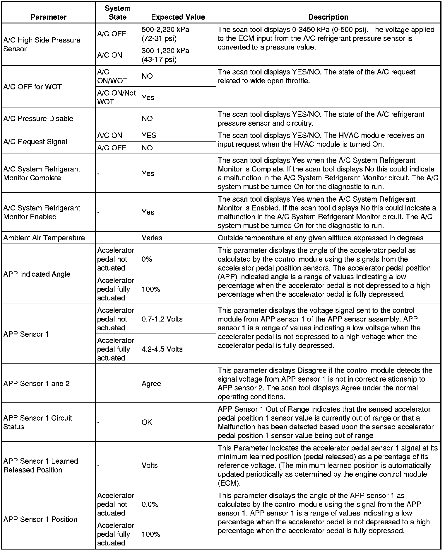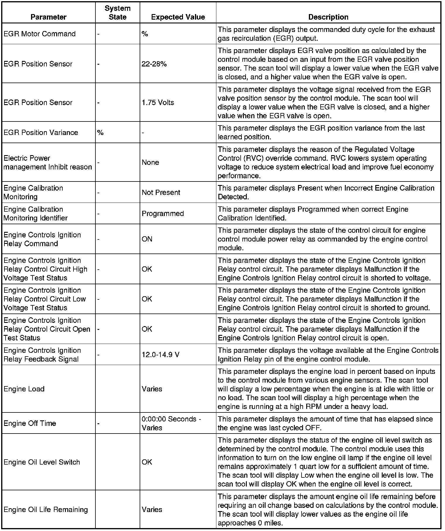 The Engine Control Module Scan Tool Data List contains all engine-related parameters that are available on the scan tool. The list is arranged in alphabetical order. A given parameter may appear in any one of the data lists, and in some cases may appear more than once, or in more than one data list in order to group certain related parameters together.