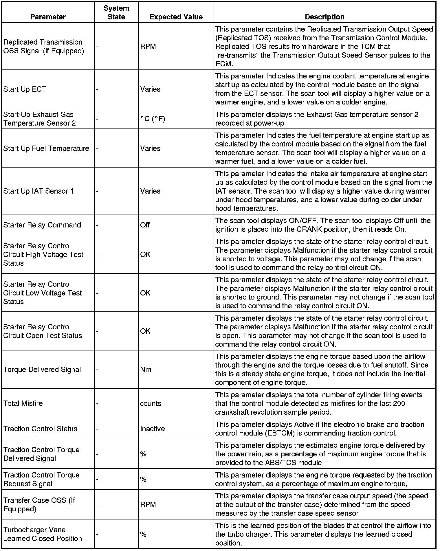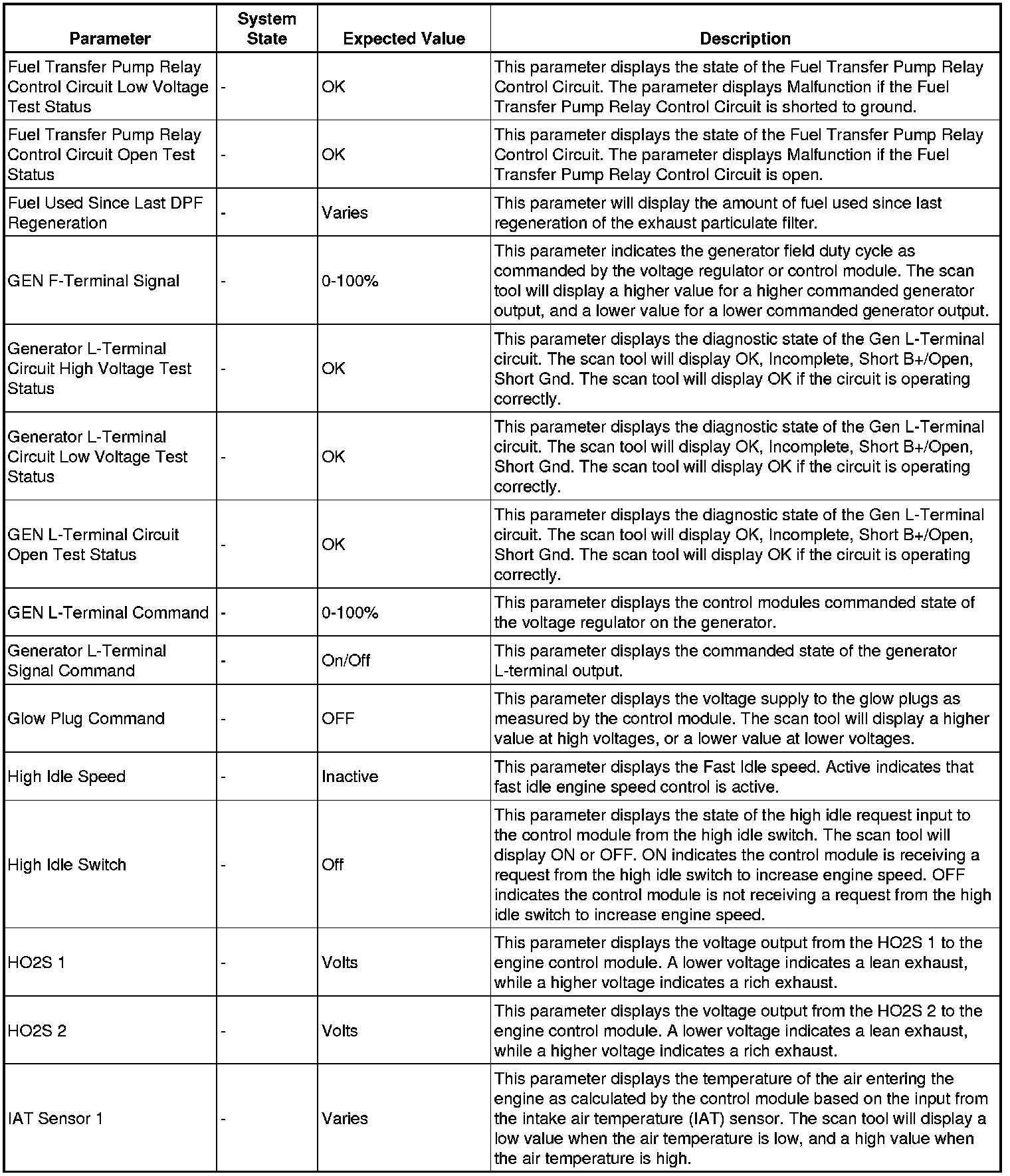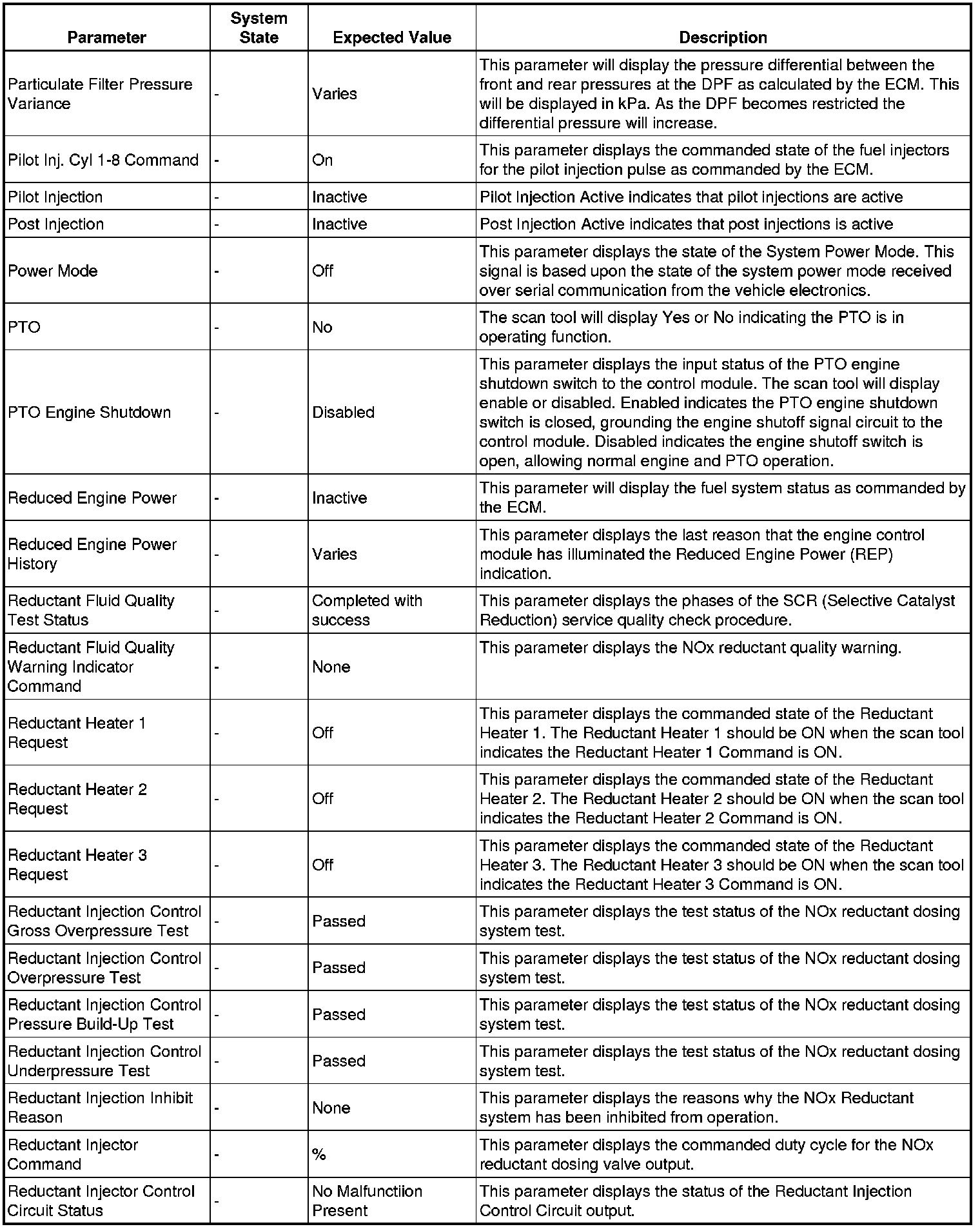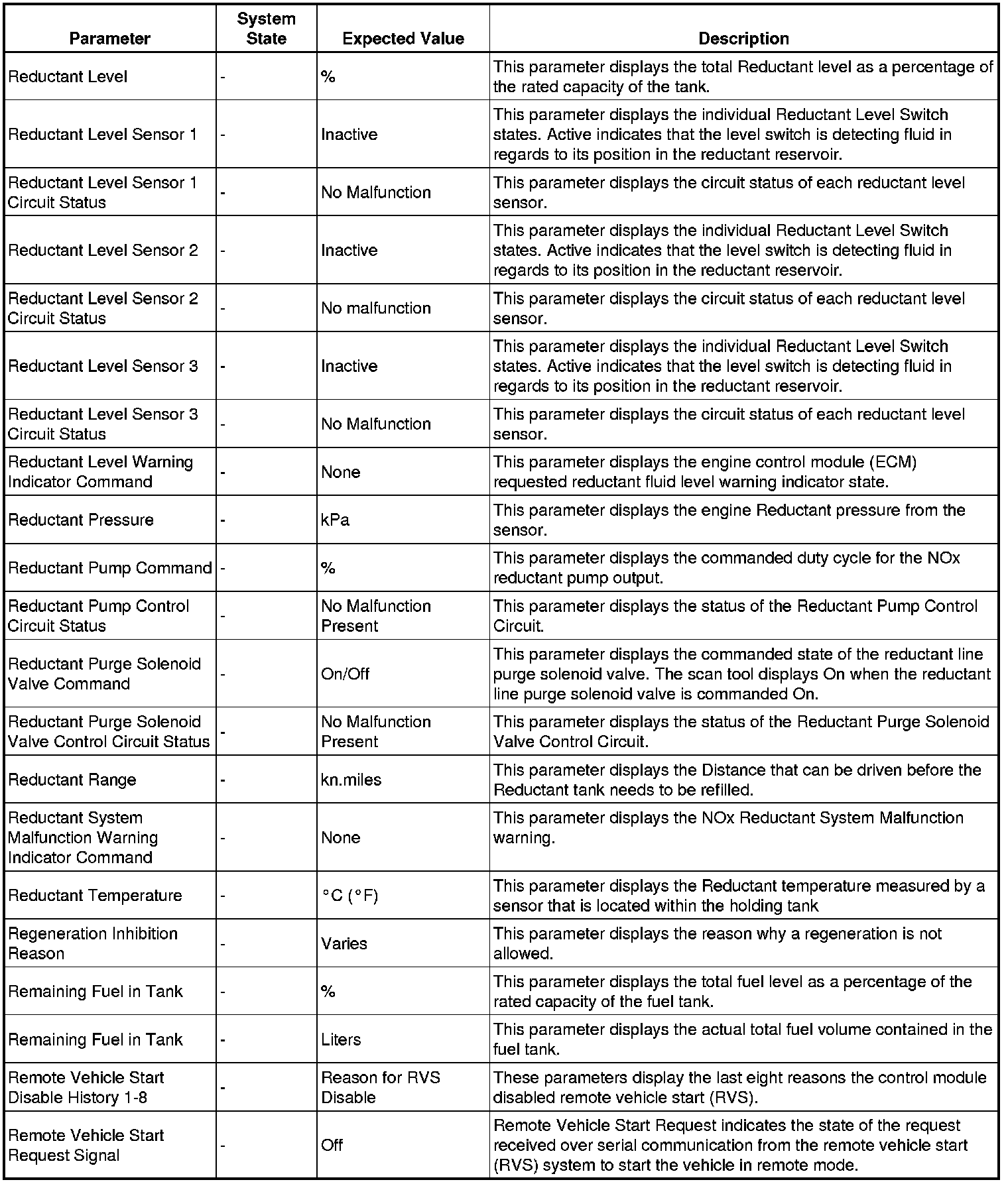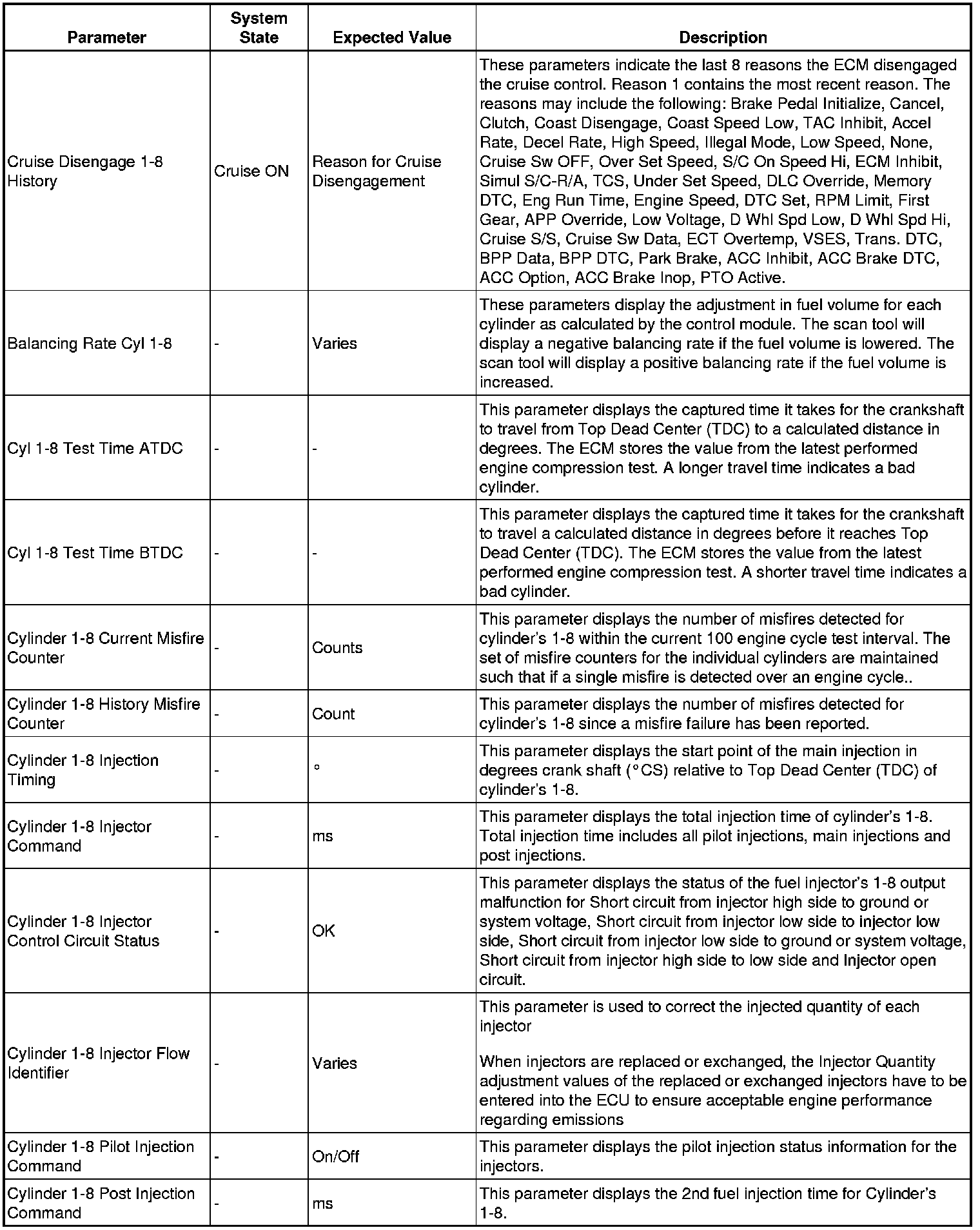 Only the parameters listed below are referenced in this service manual for use in diagnosis.