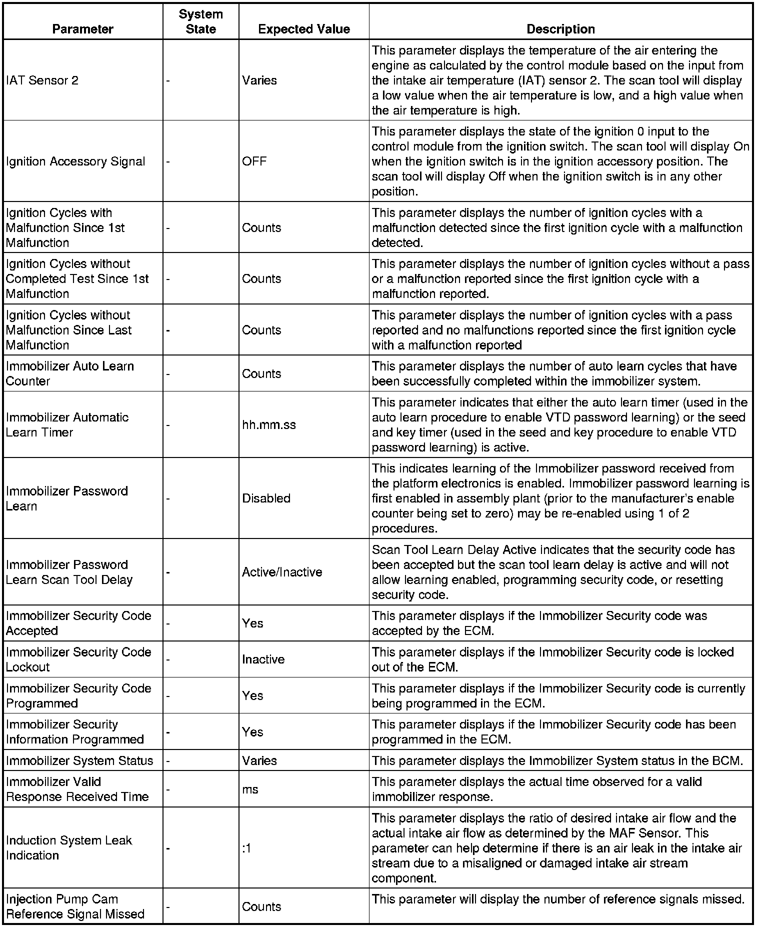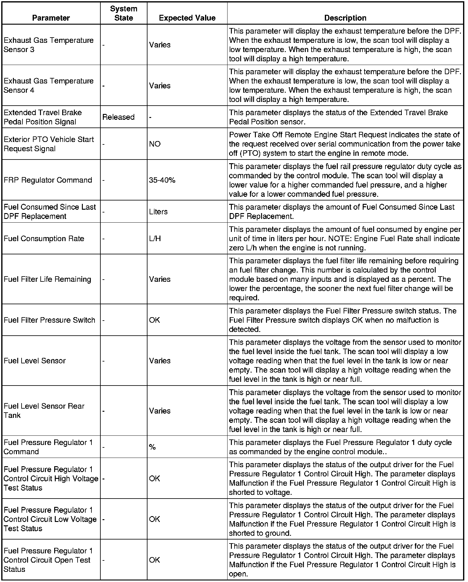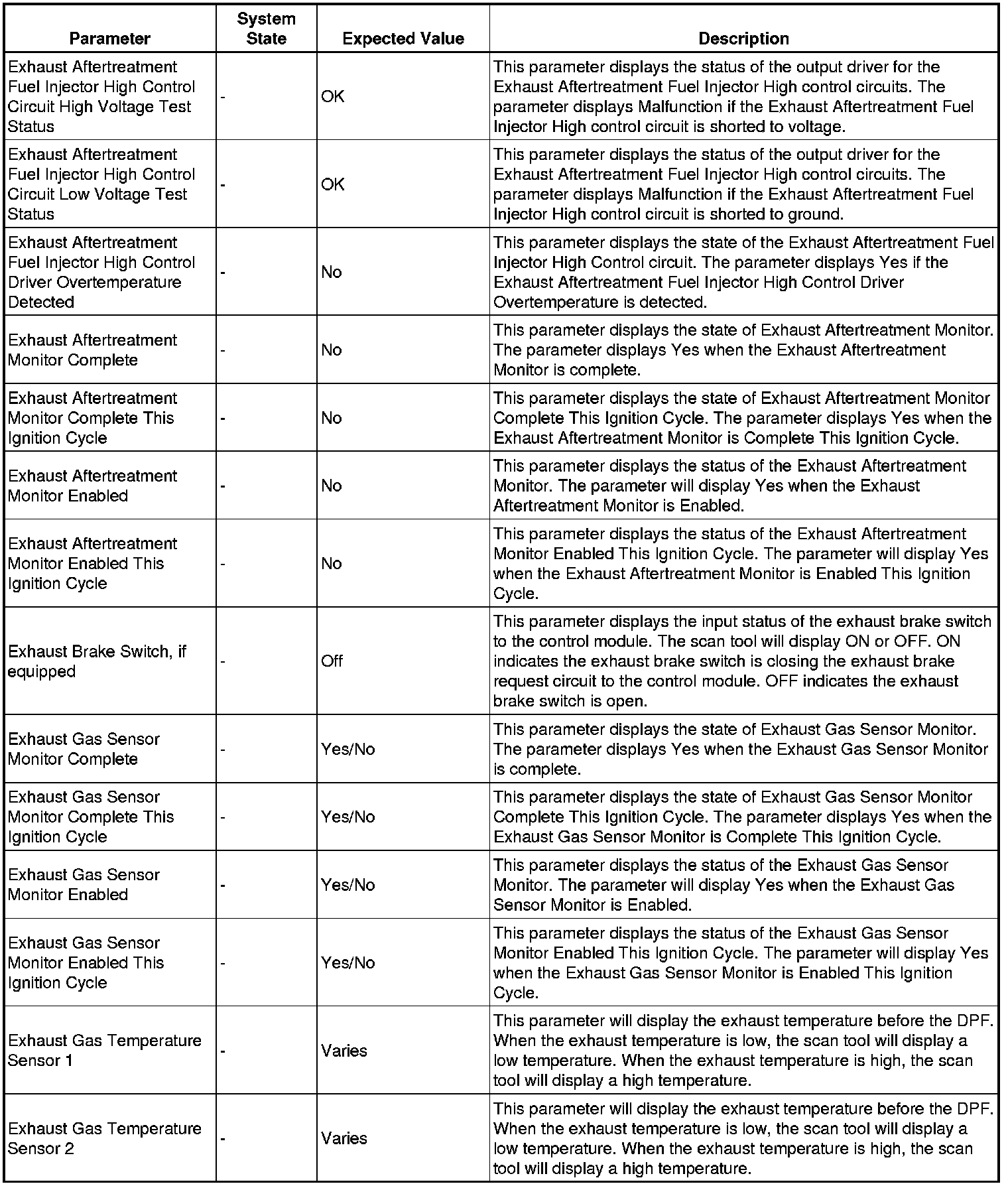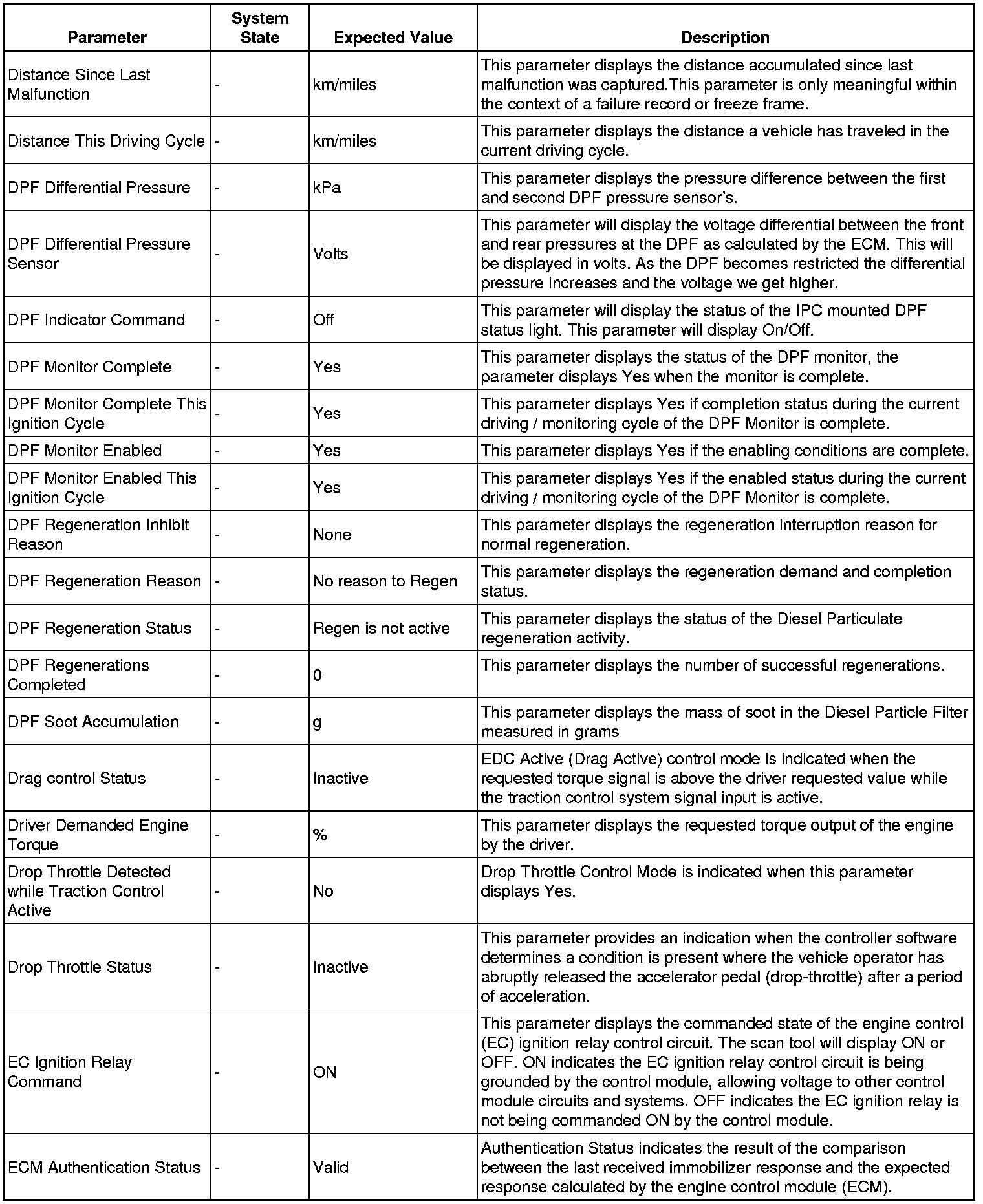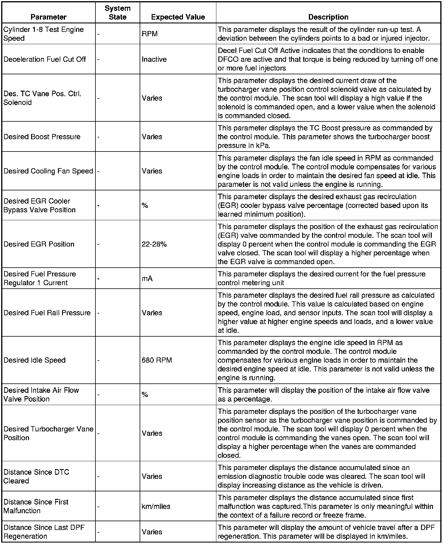 Only the parameters listed below are referenced in this service manual for use in diagnosis.