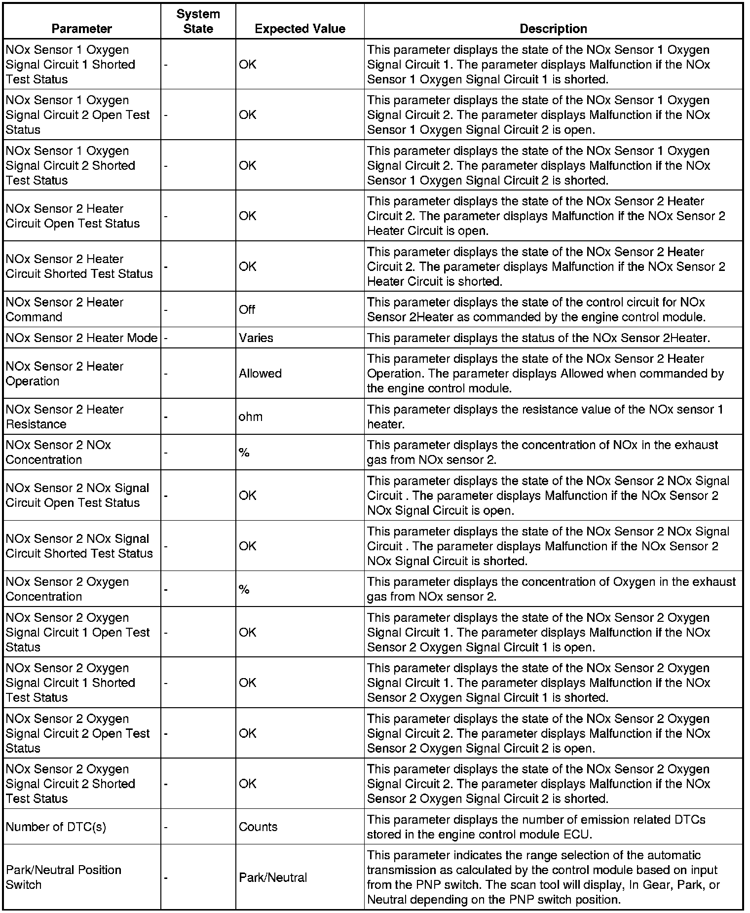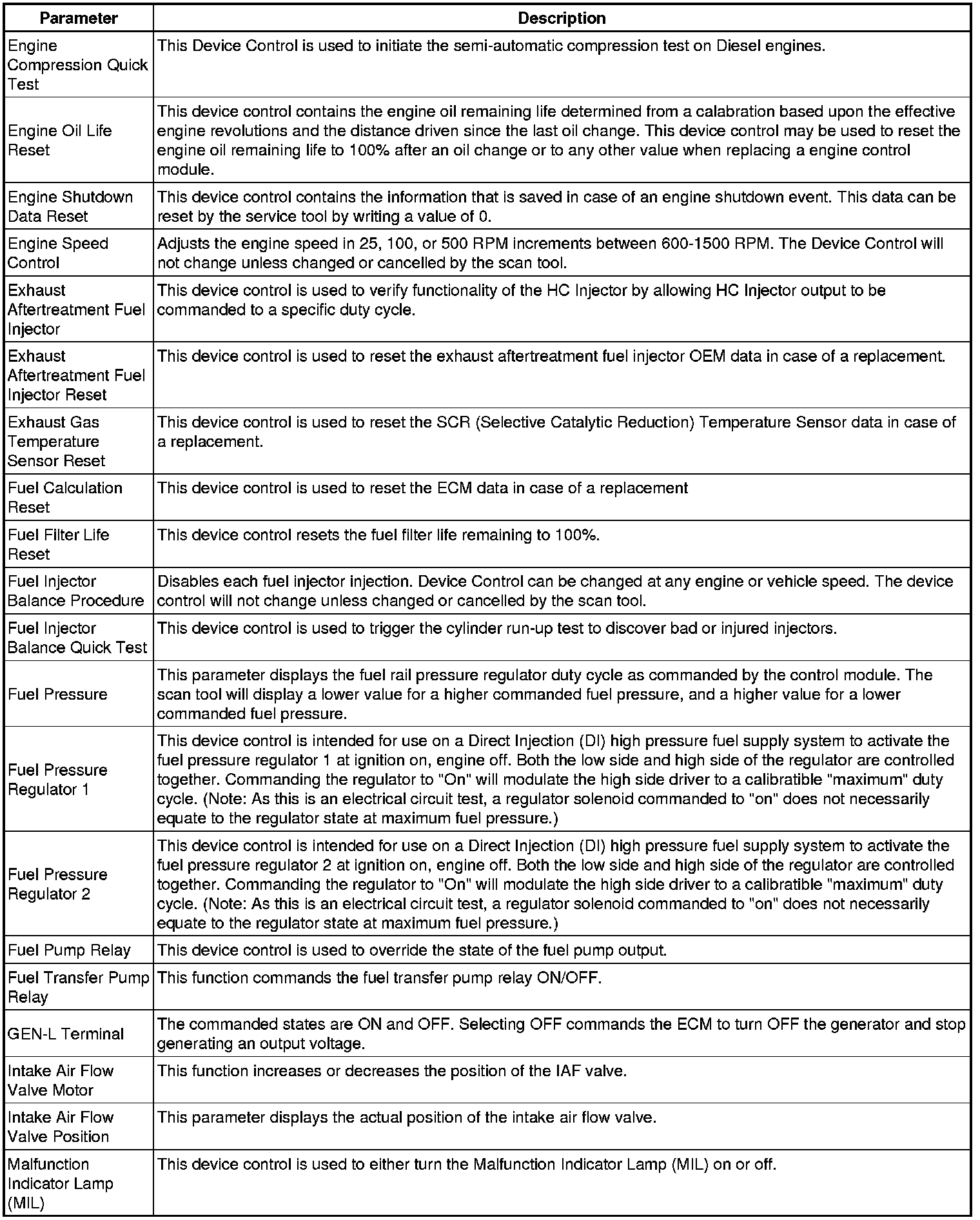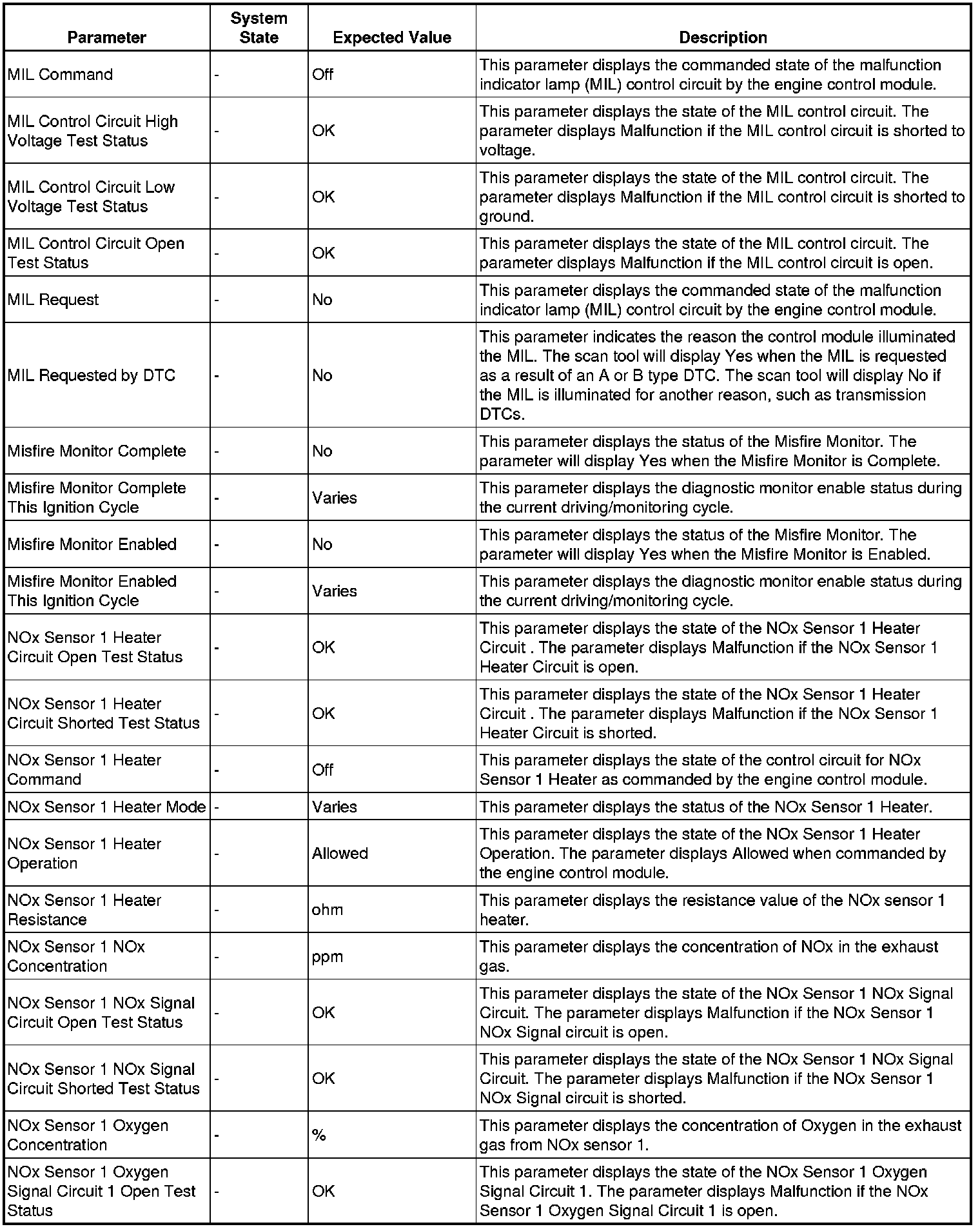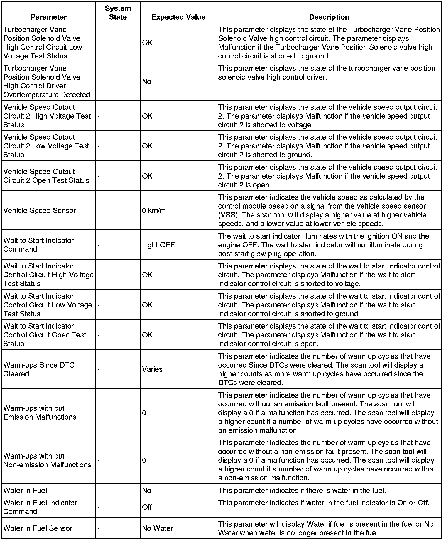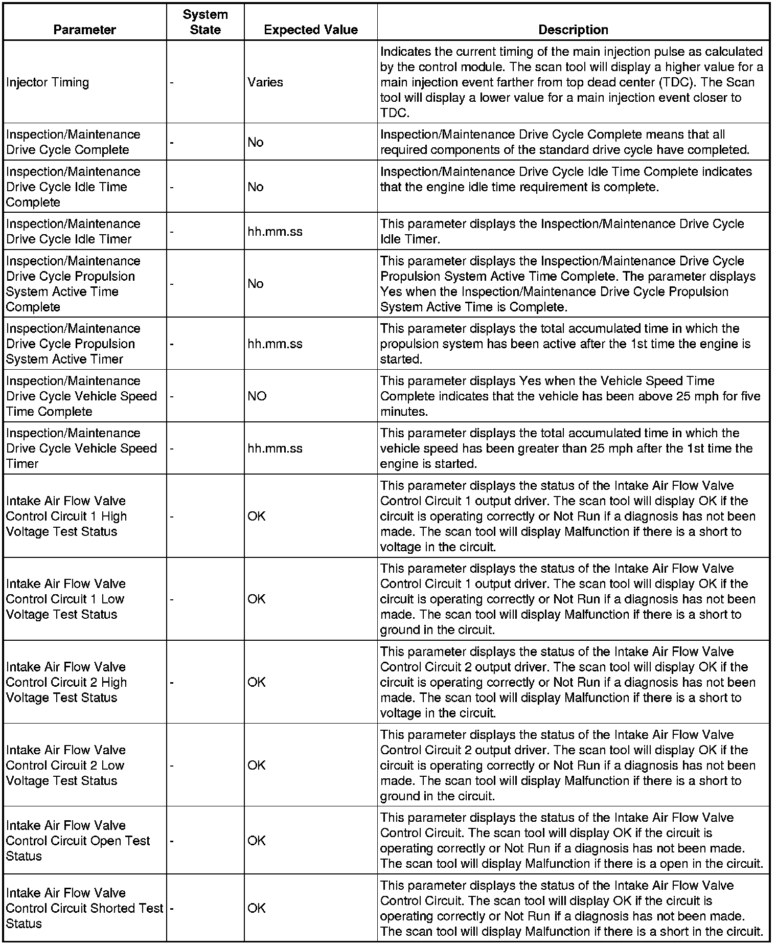 Only the parameters listed below are referenced in this service manual for use in diagnosis.