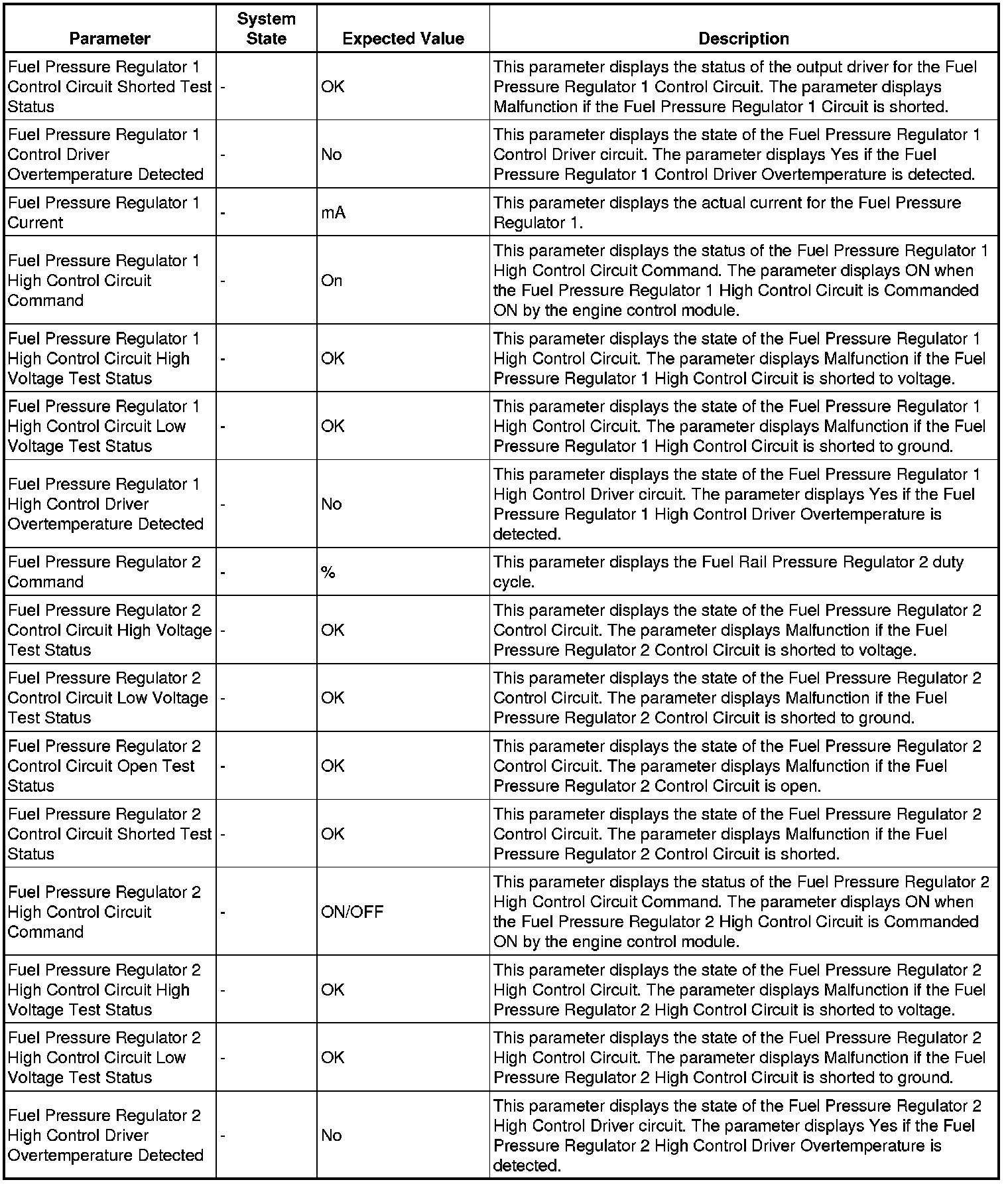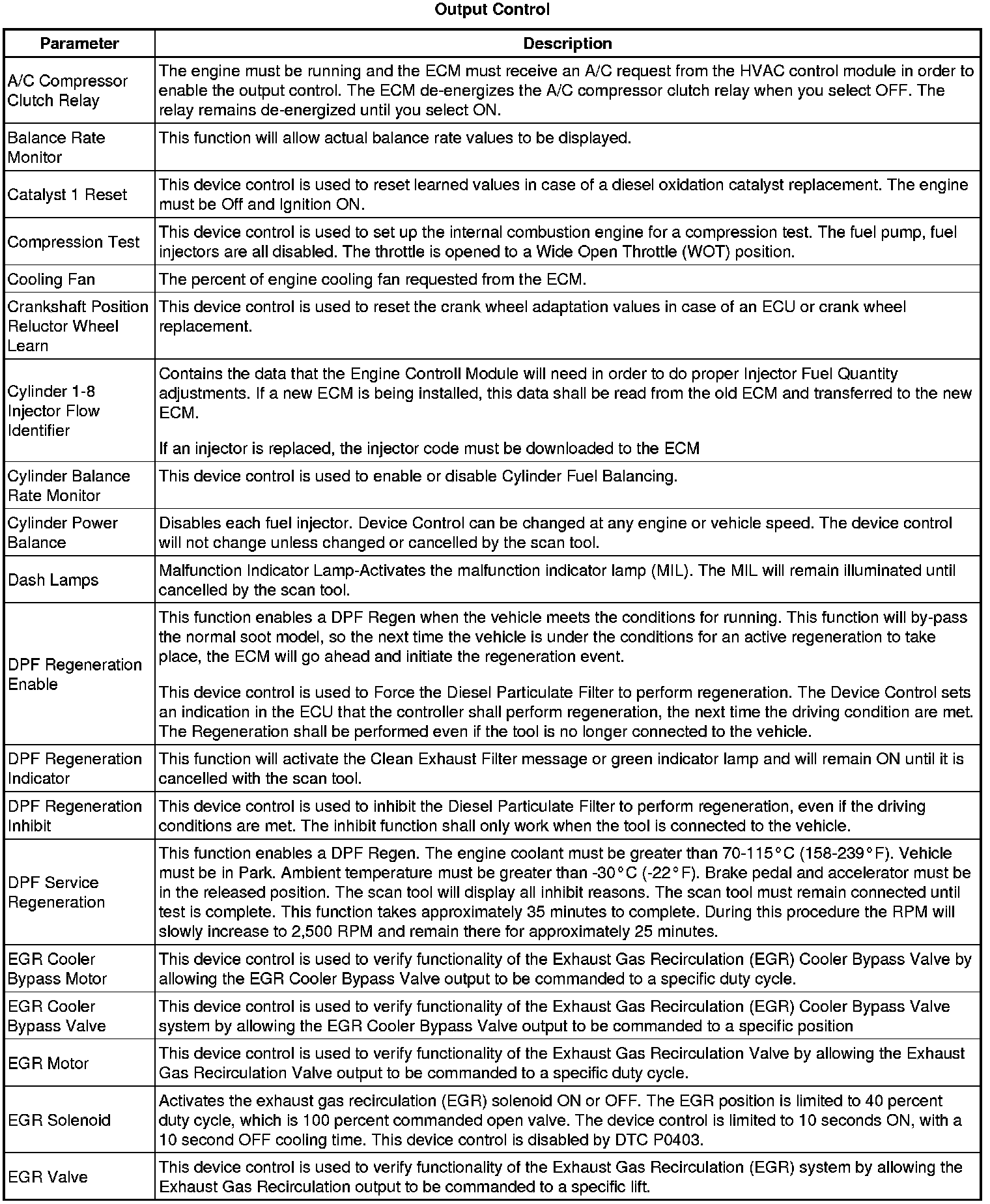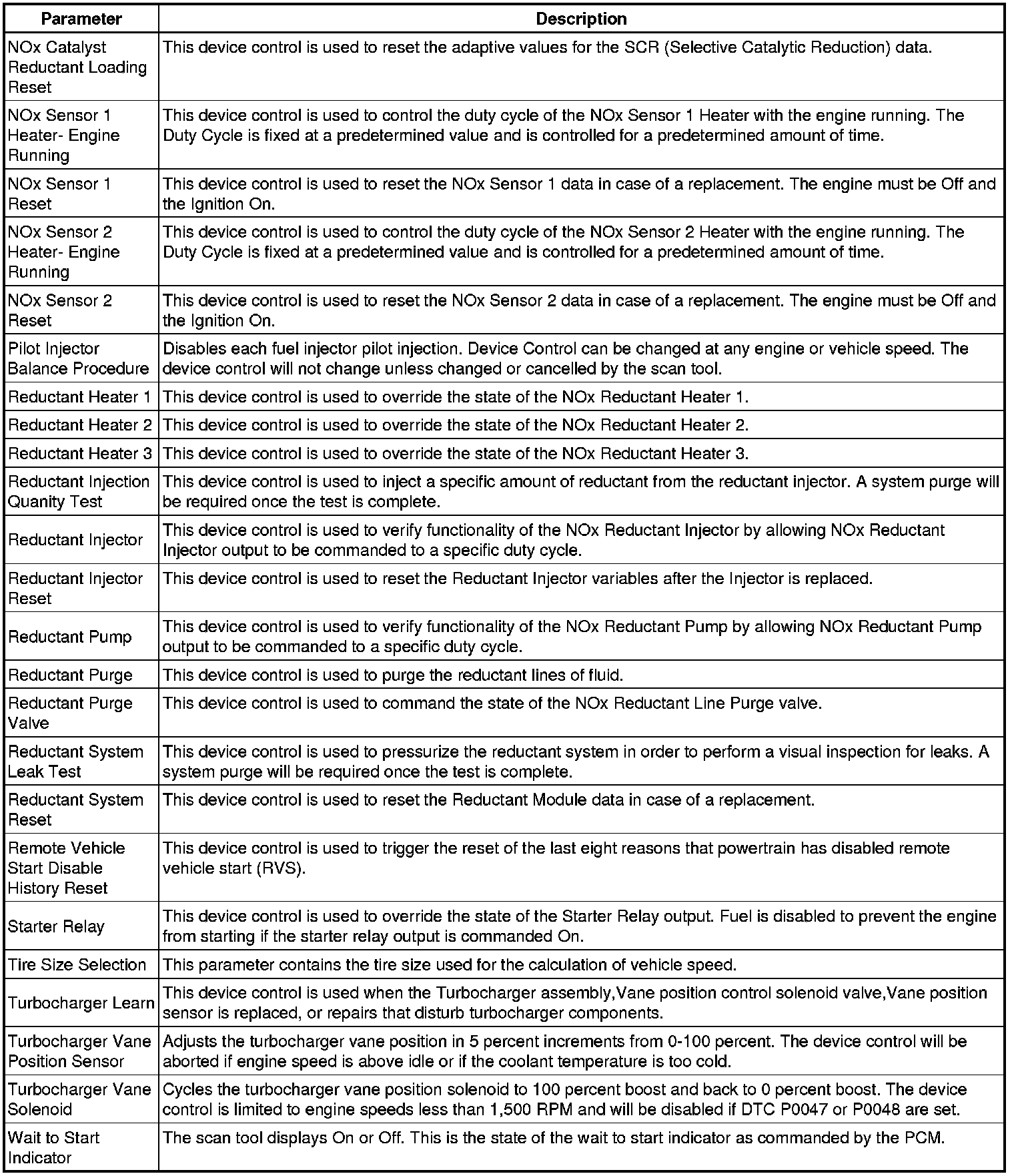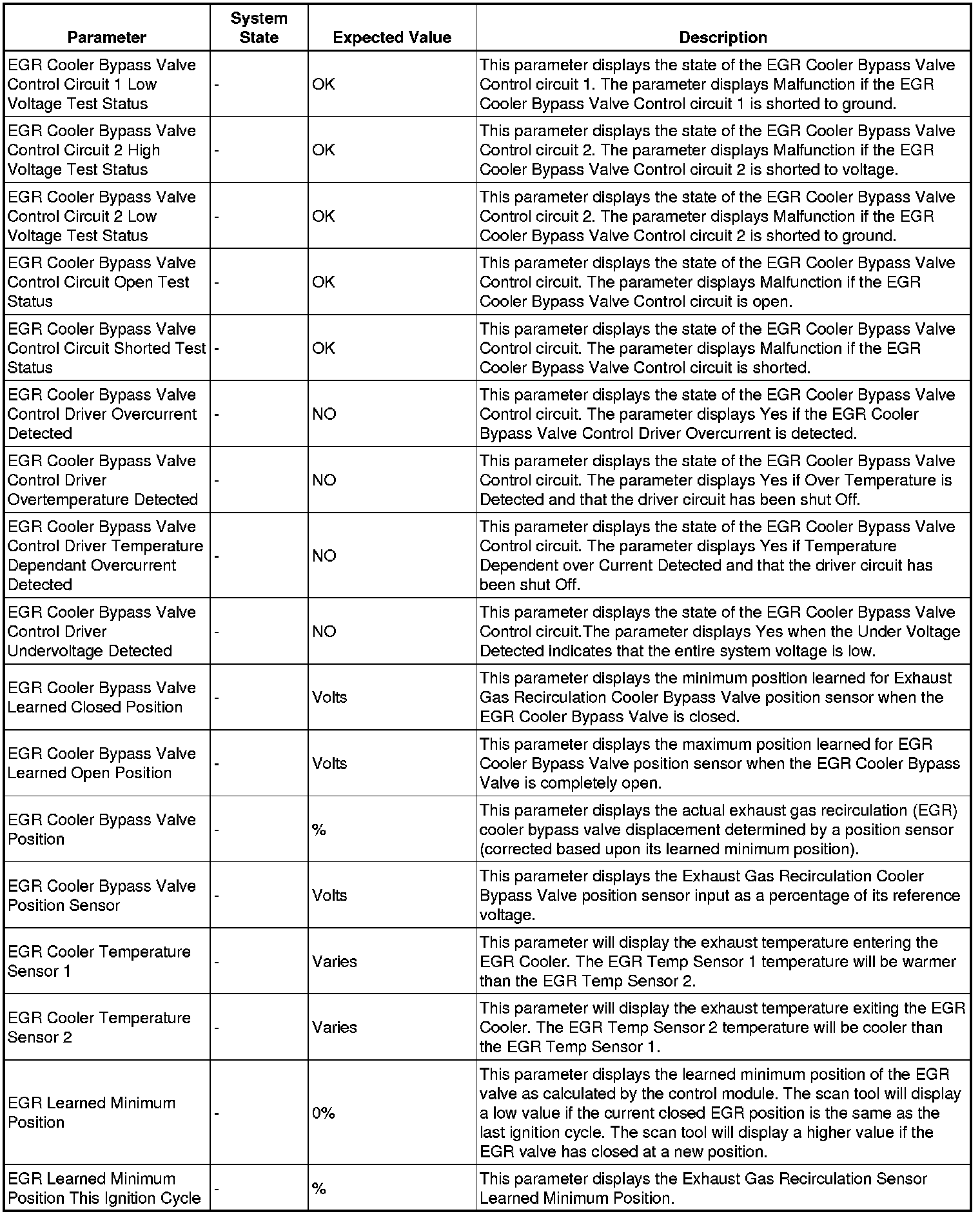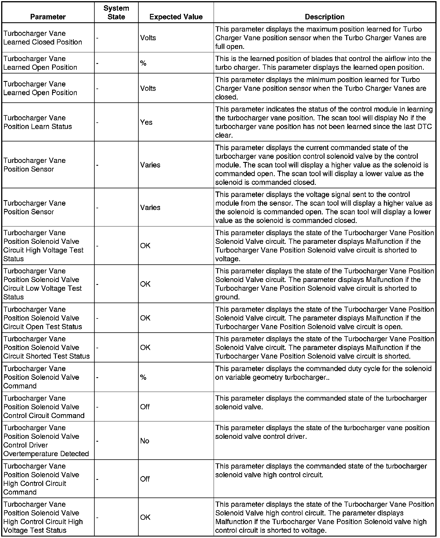 Only the parameters listed below are referenced in this service manual for use in diagnosis.