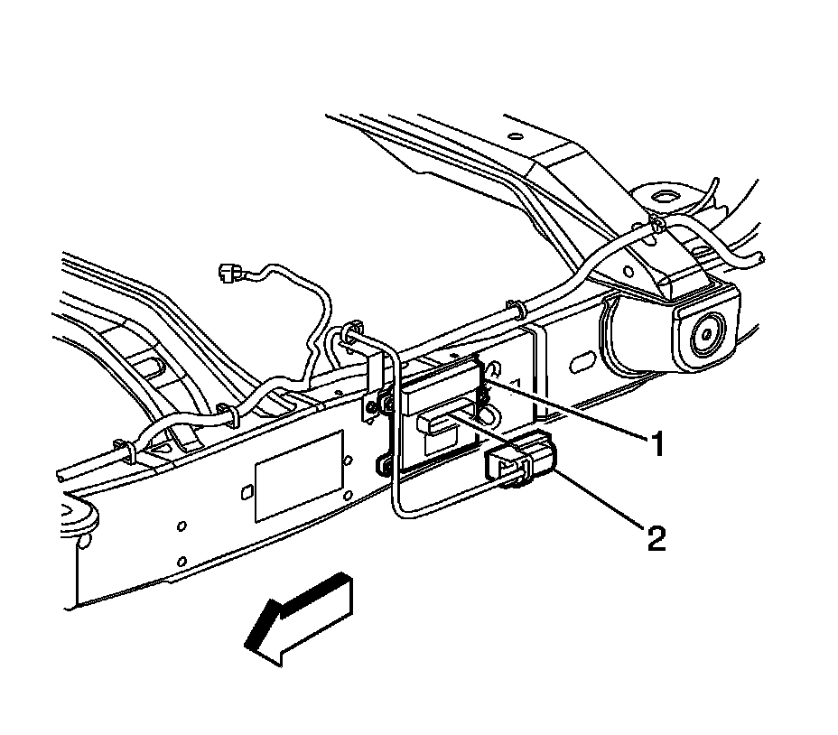 2. Disconnect the chassis wiring harness electrical connector (2) from the fuel pump flow control module (1).