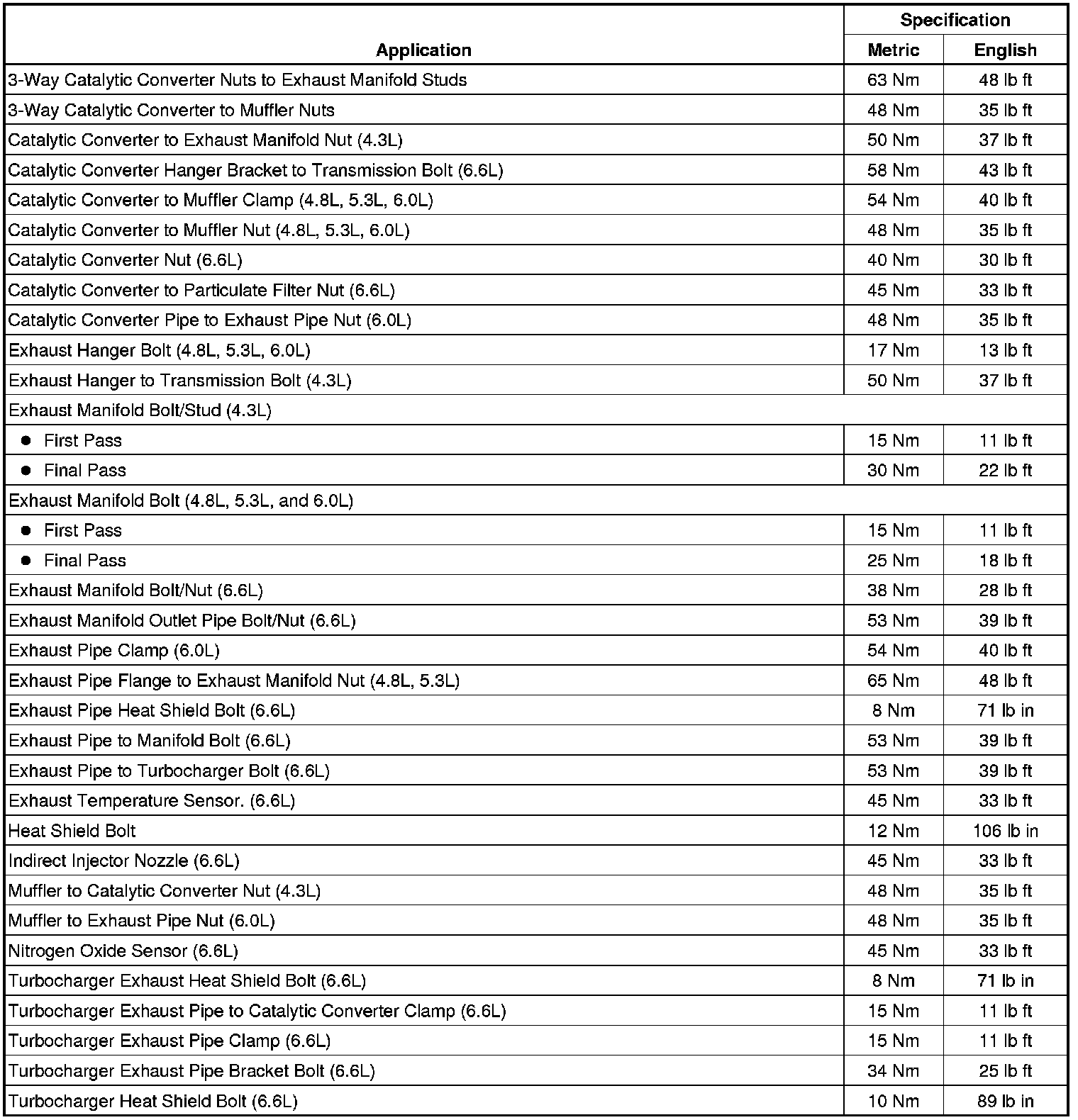 Fastener Tightening Specifications