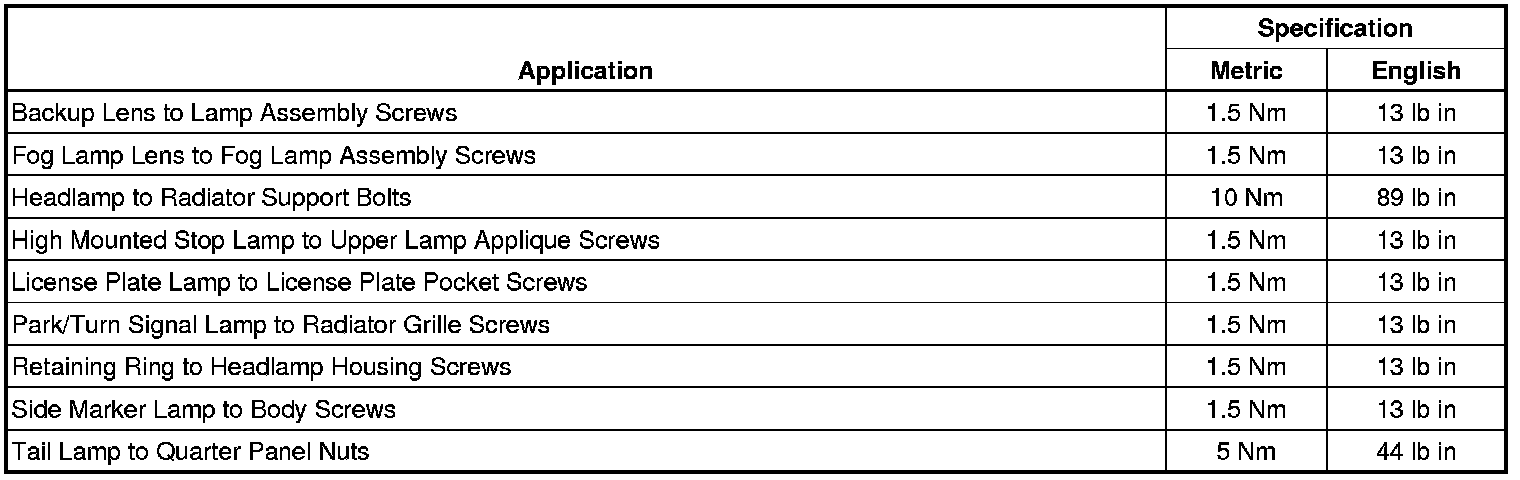 Fastener Tightening Specifications