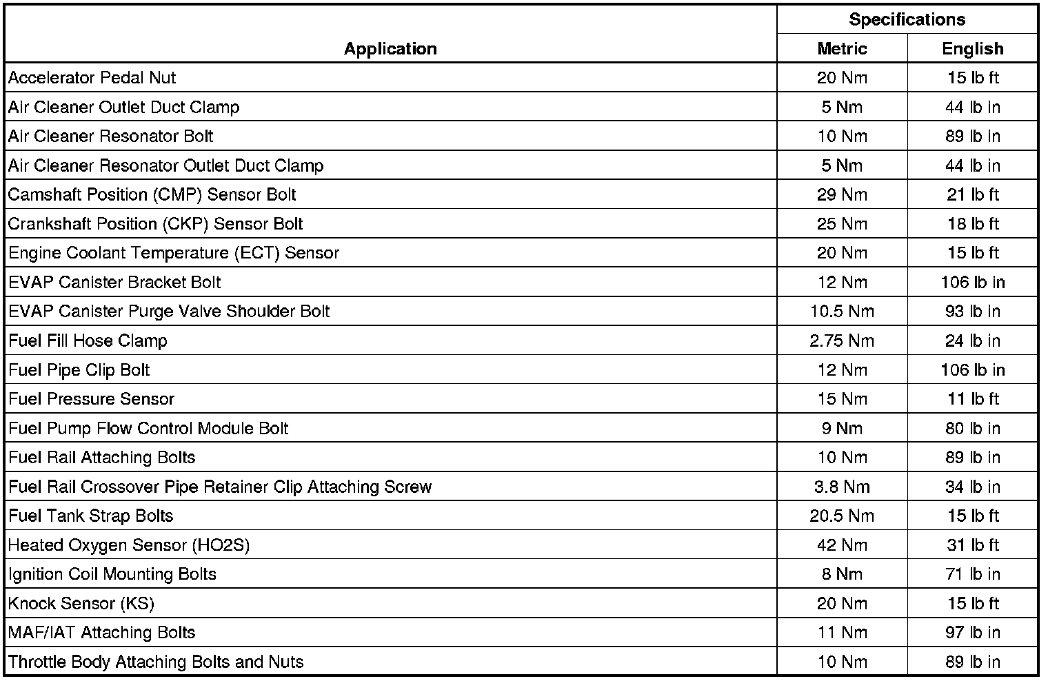 Fastener Tightening Specifications
