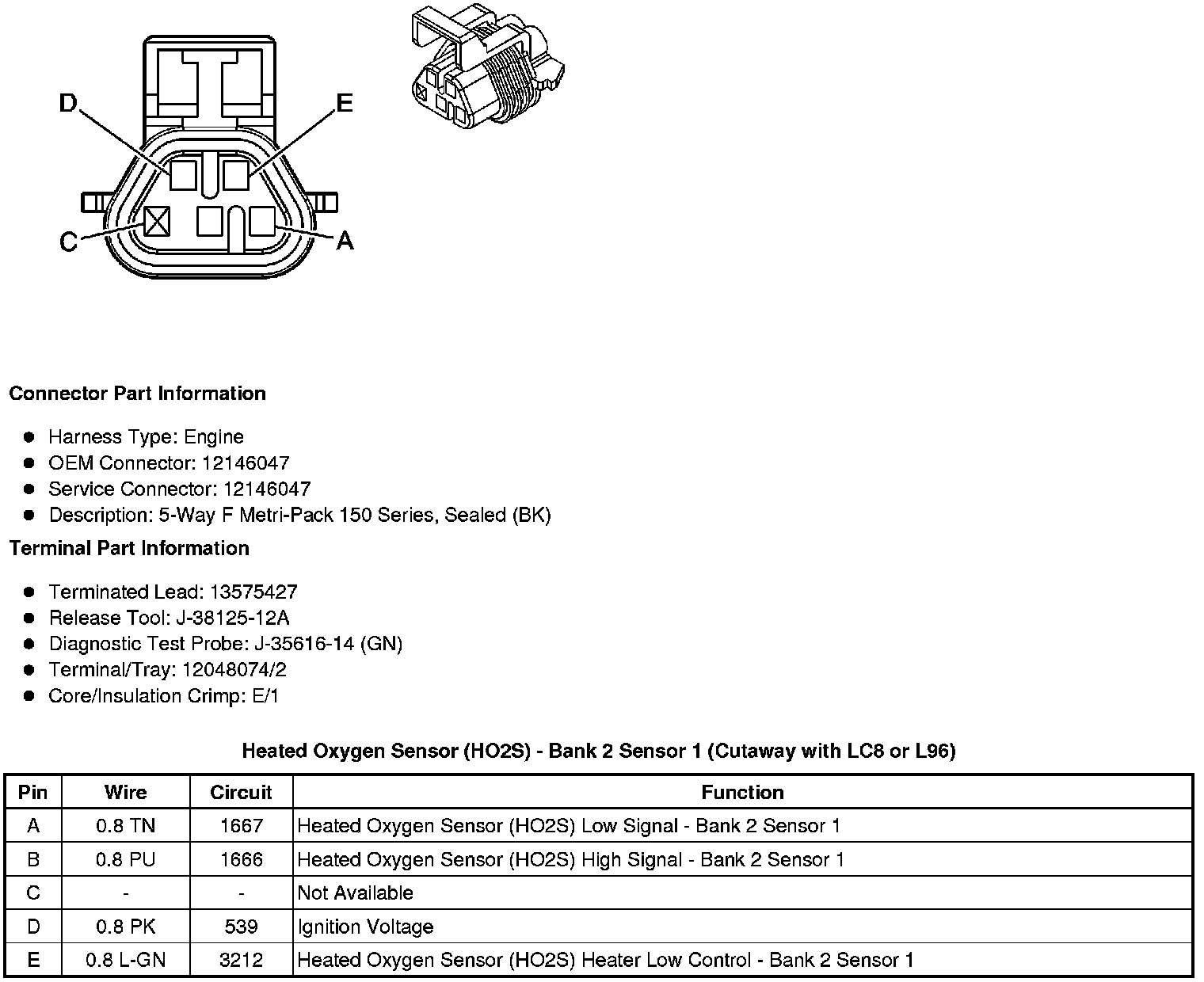 Heated Oxygen Sensor (HO2S) - Bank 2 Sensor 1 (Cutaway with LC8 or L96)