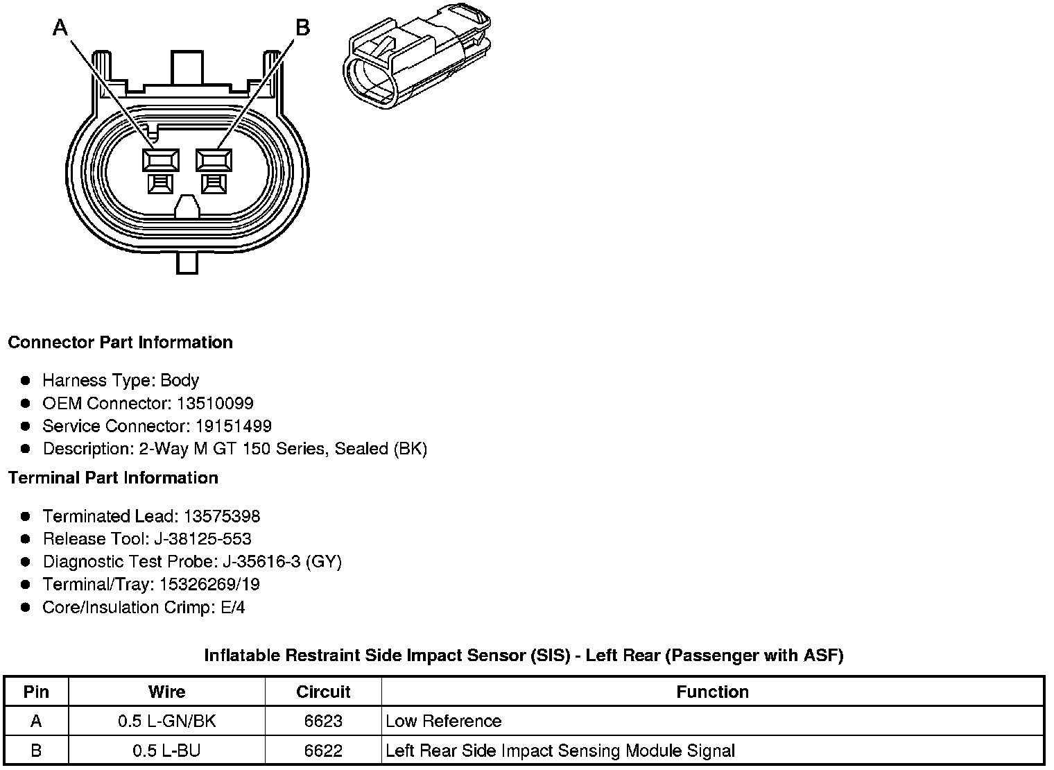 Inflatable Restraint Side Impact Sensor (SIS) - Left Rear (Passenger with ASF)