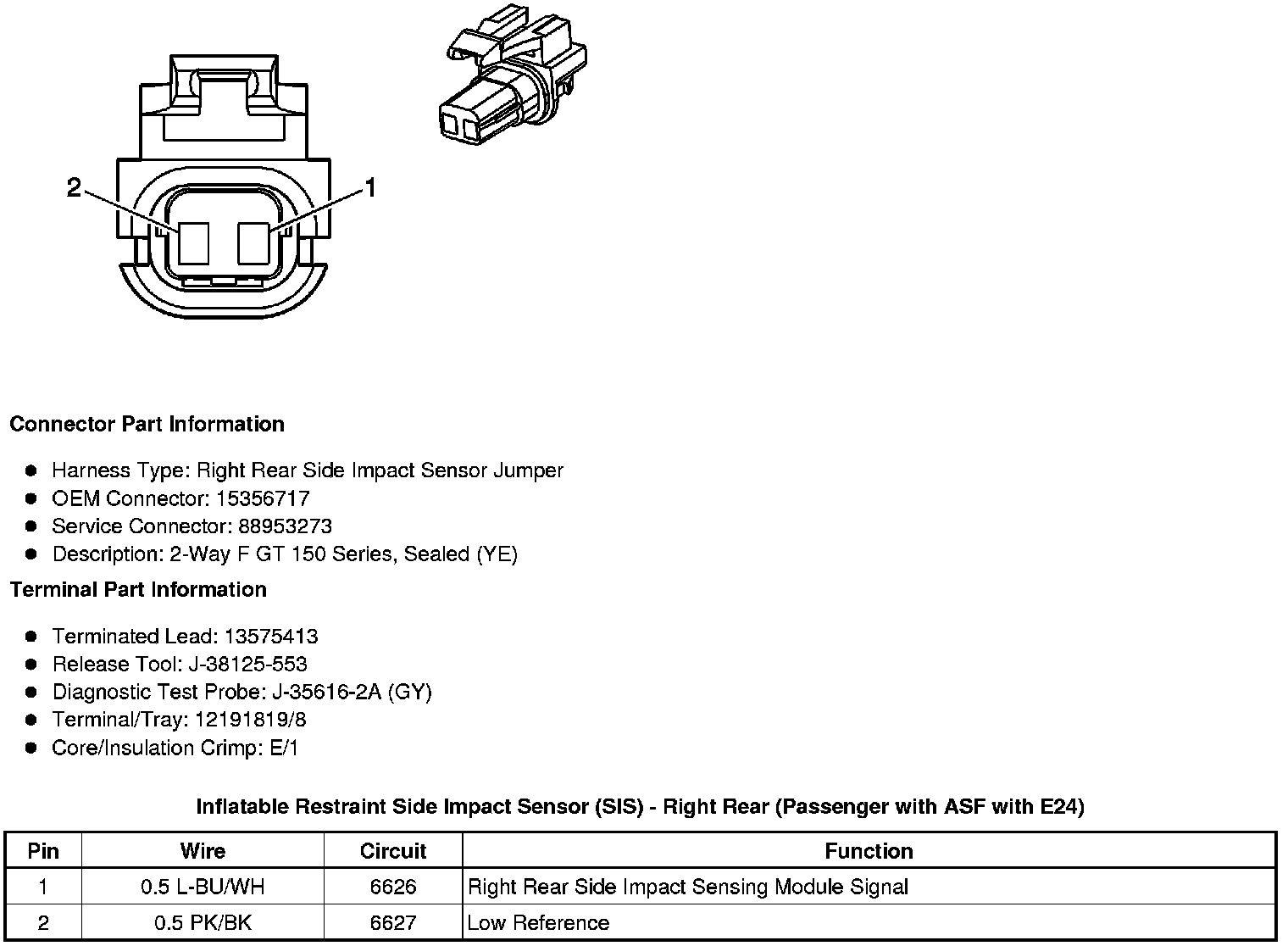 Inflatable Restraint Side Impact Sensor (SIS) - Right Rear (Passenger with ASF with E24)