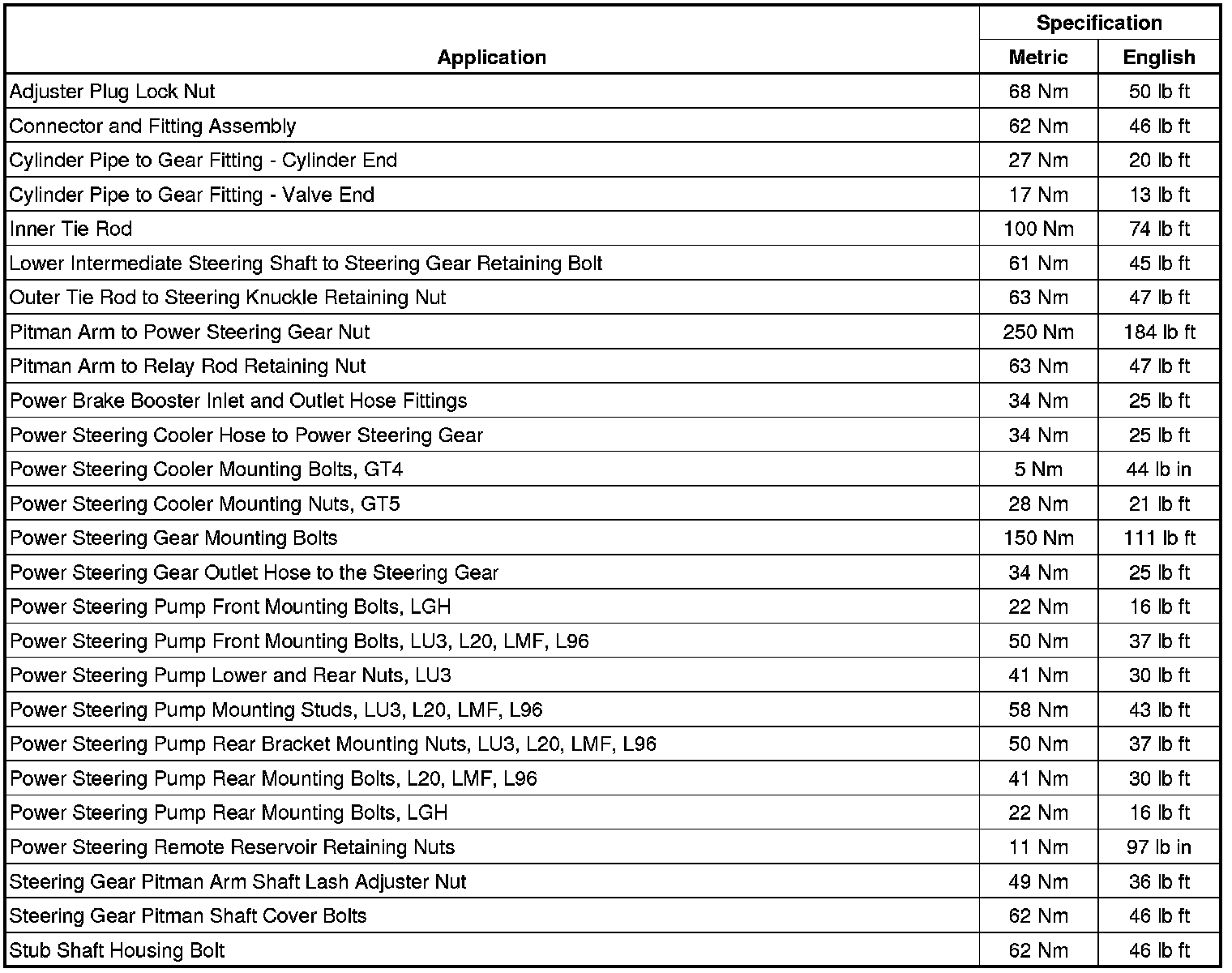 Fastener Tightening Specifications