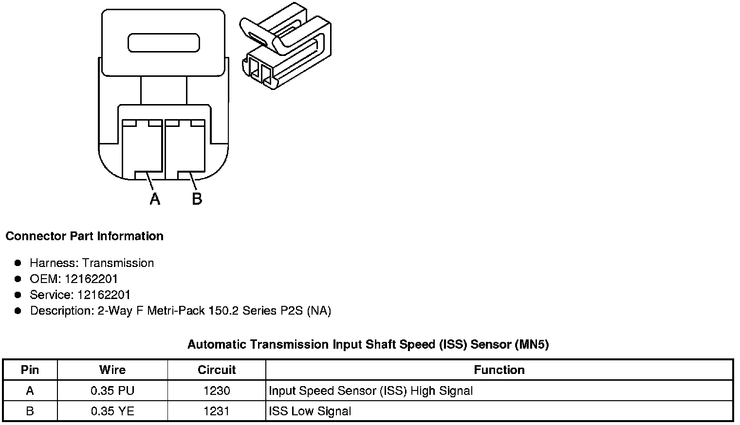 Automatic Transmission Input Shaft Speed (ISS) Sensor (MN5)
