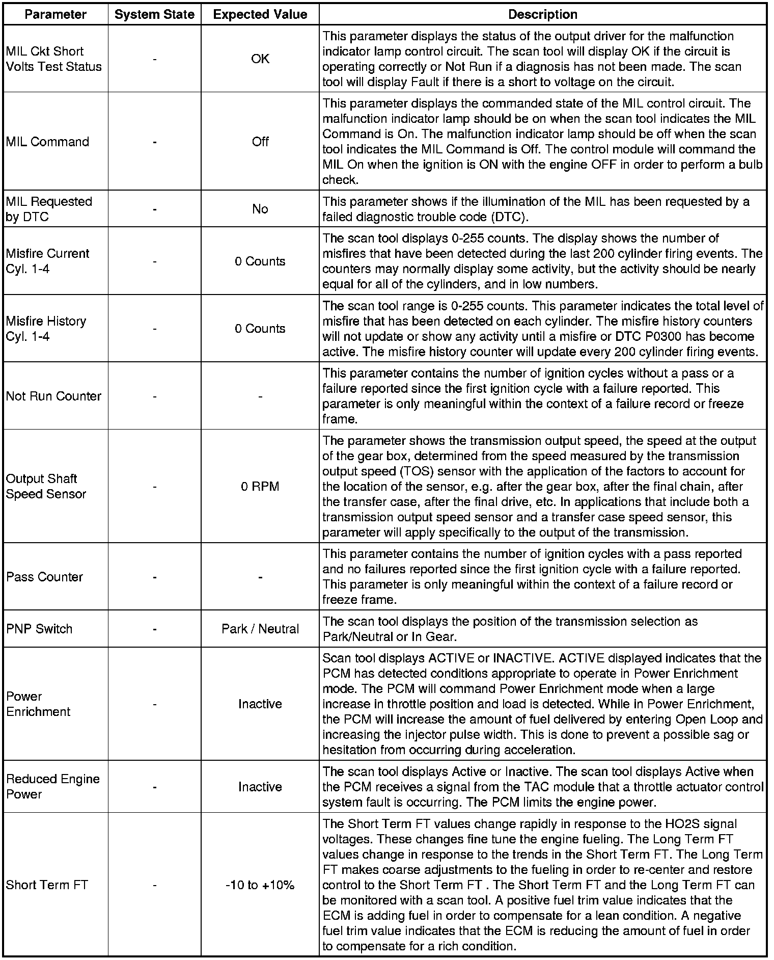 Only the parameters listed below are referenced in this service manual for use in diagnosis. If all values are within the typical range described below, refer to Symptoms - Engine Controls (Symptoms - Engine Controls).
