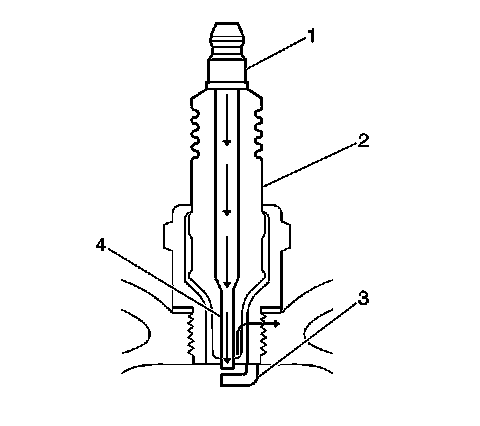 - Inspect for the correct spark plug torque. Refer to Ignition System Specifications (Application and ID). Insufficient torque can prevent correct spark plug operation. An over torqued spark plug, causes the insulator (2) to crack.