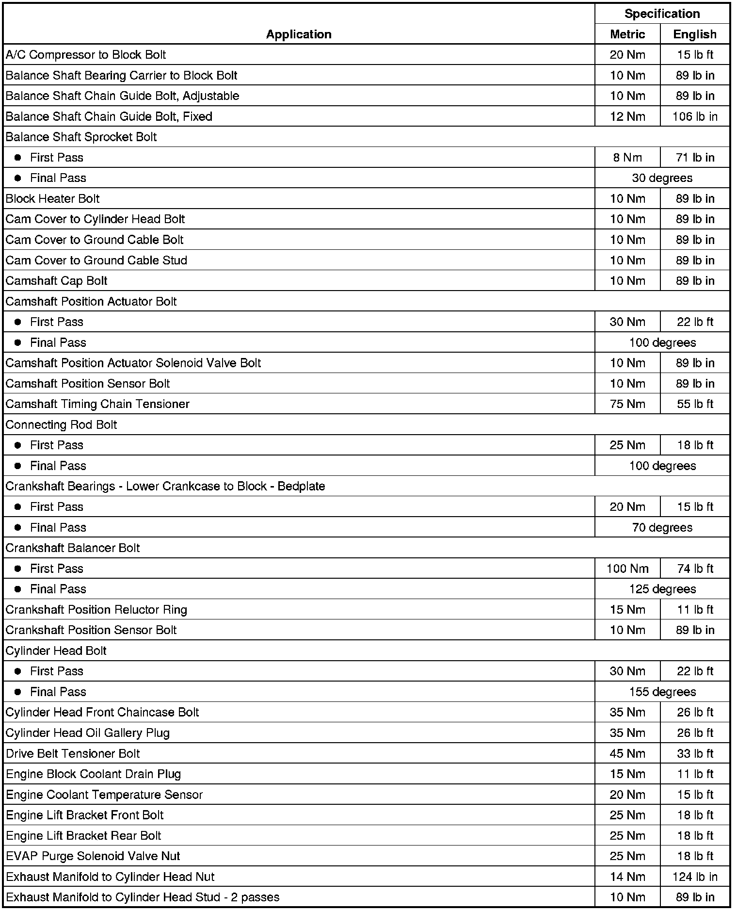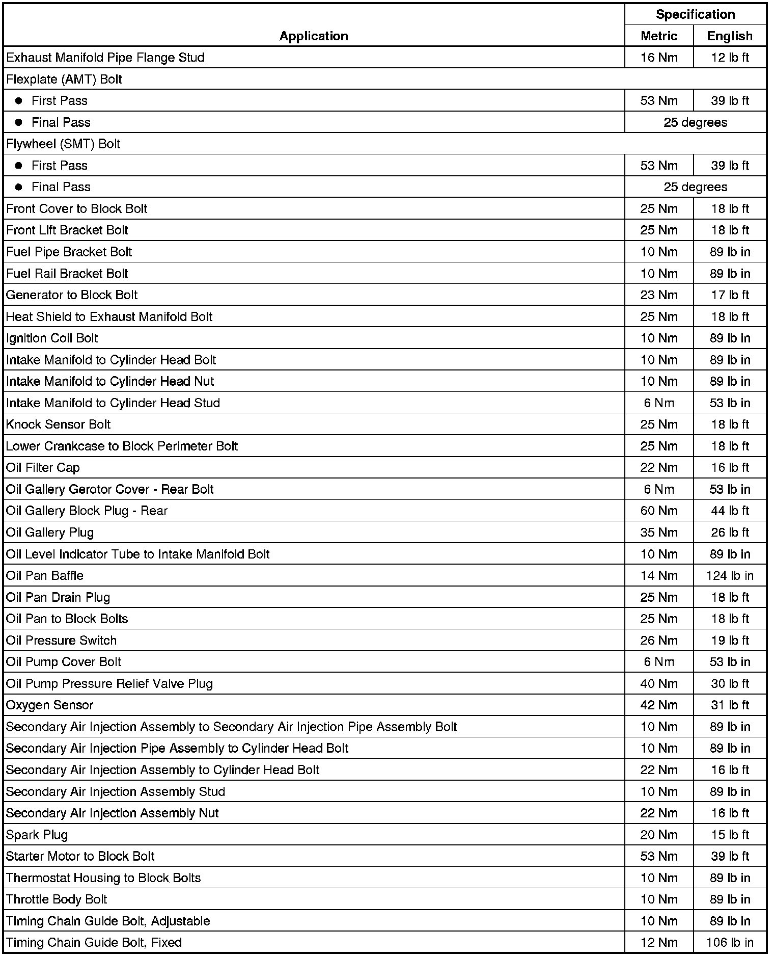 Fastener Tightening Specifications