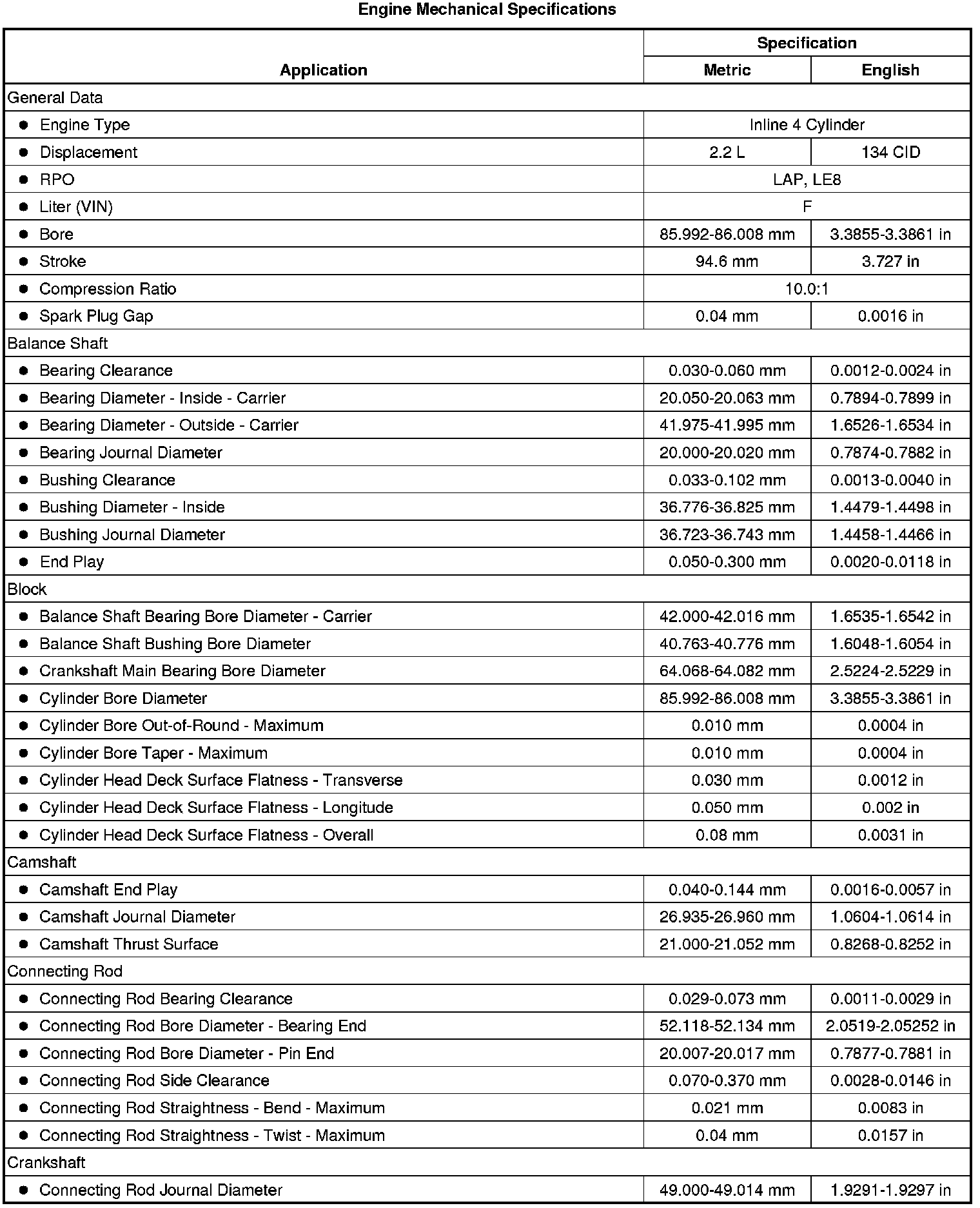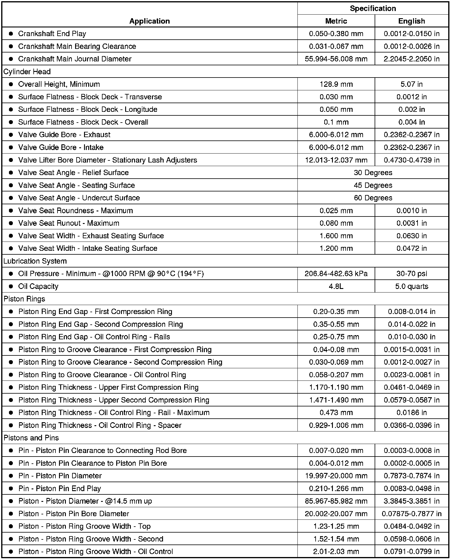 Engine Mechanical Specifications
