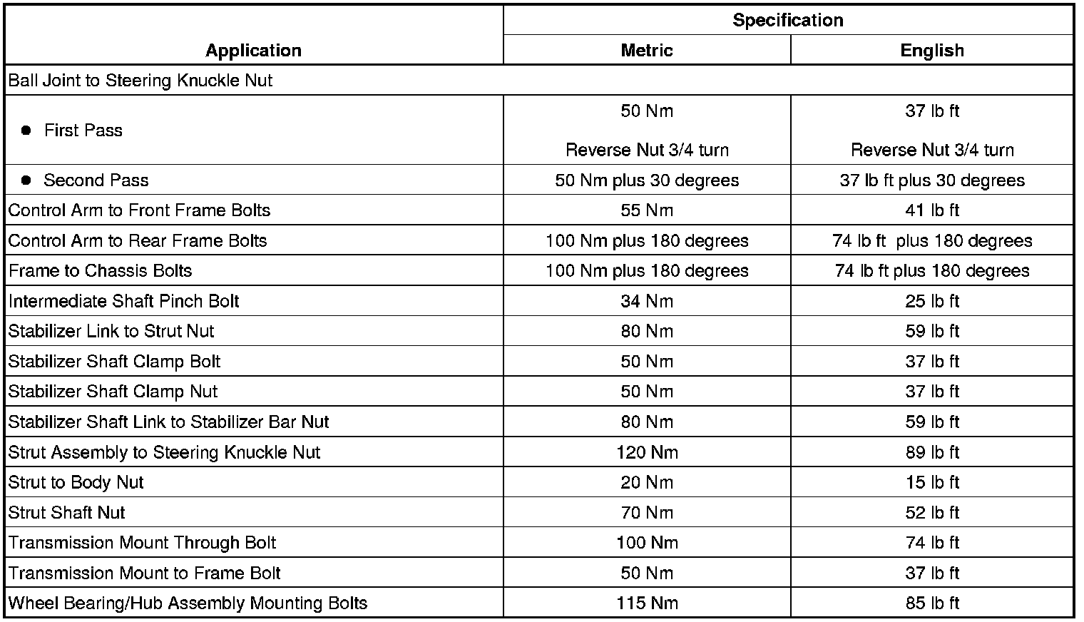 Fastener Tightening Specifications