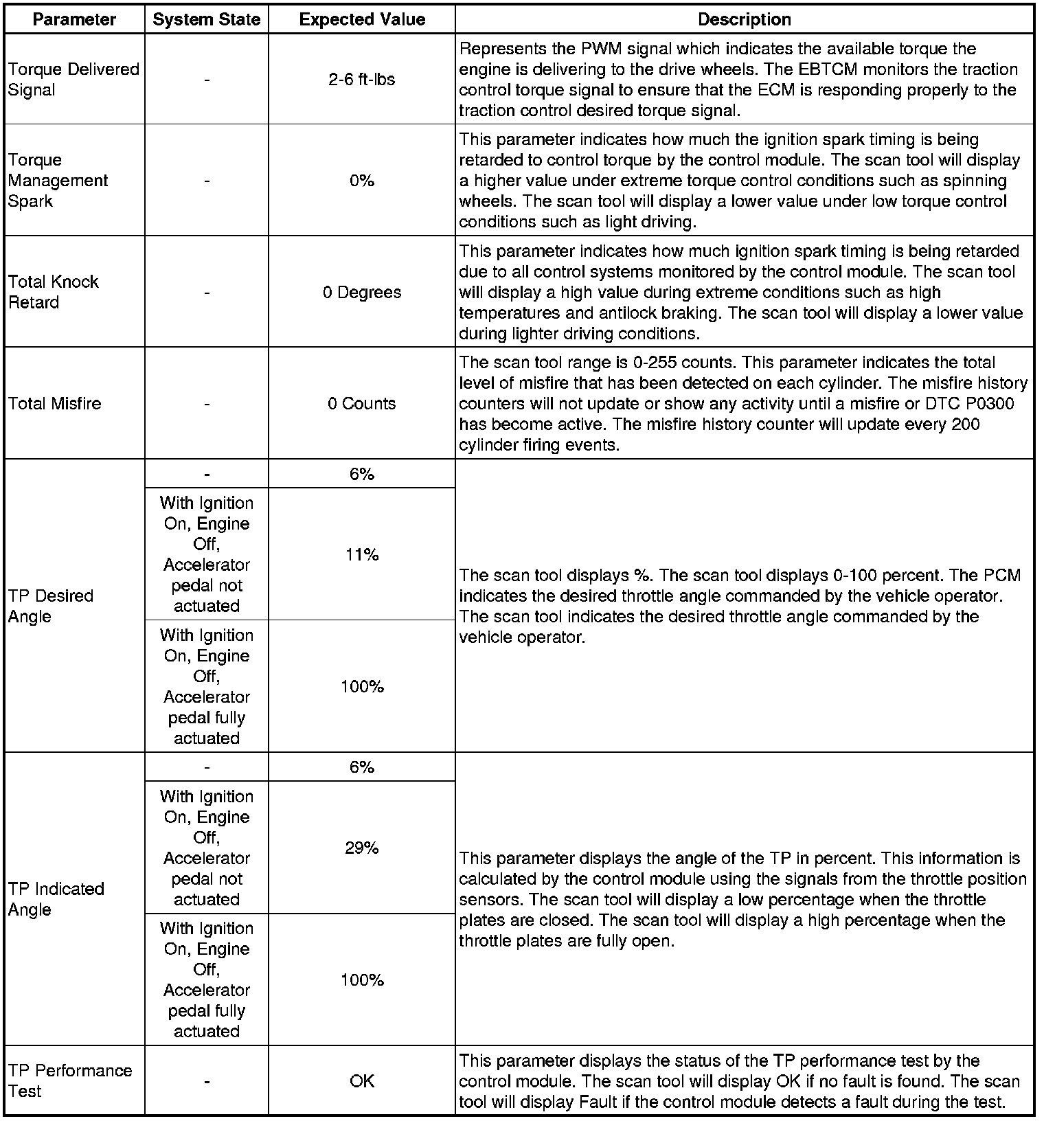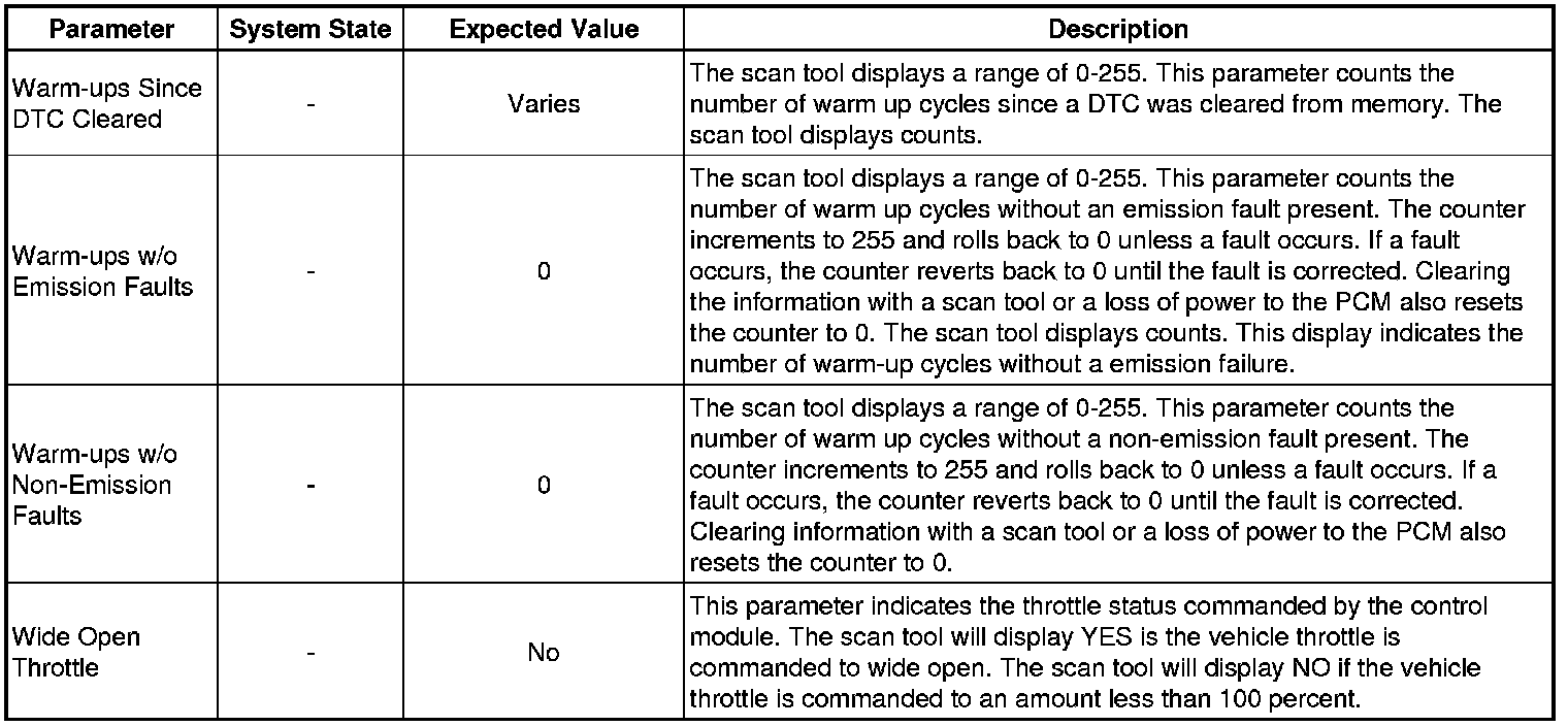 Only the parameters listed below are referenced in this service manual for use in diagnosis. If all values are within the typical range described below, refer to Symptoms - Engine Controls (Symptoms - Engine Controls) for diagnosis.